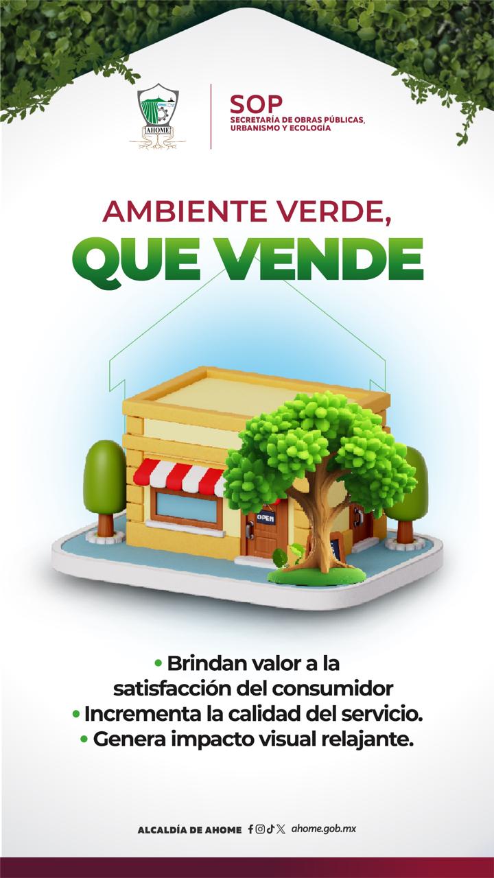 Los Mochis, Ahome, Sinaloa. – Con el respaldo del Presidente Municipal Antonio Menéndez De Llano Bermúdez, el Gobierno de Ahome, a través de la Dirección de Medio Ambiente y Desarrollo Urbano, lanzó la campaña “Ambiente verde, que vende”, una estrategia que promueve la incorporación de vegetación en los entornos comerciales, urbanos y ciudadanos.