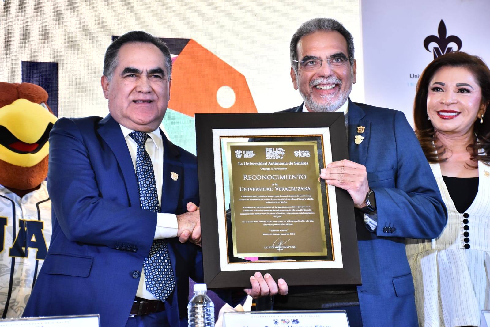 En el marco de la inauguración, también se llevó a cabo la firma del Convenio General de Colaboración entre la UAS, representada por el rector Madueña Molina, y la Universidad Veracruzana, representada por su rector, el doctor Martín Gerardo Aguilar Sánchez. Este último agradeció que su universidad sea la institución invitada de honor de la FeliUAS 2026, a la que calificó como una gran celebración del pensamiento, de las artes y de la cultura, así como un espacio que año con año confirma que el libro sigue siendo una de las expresiones más vivas y transformadoras.