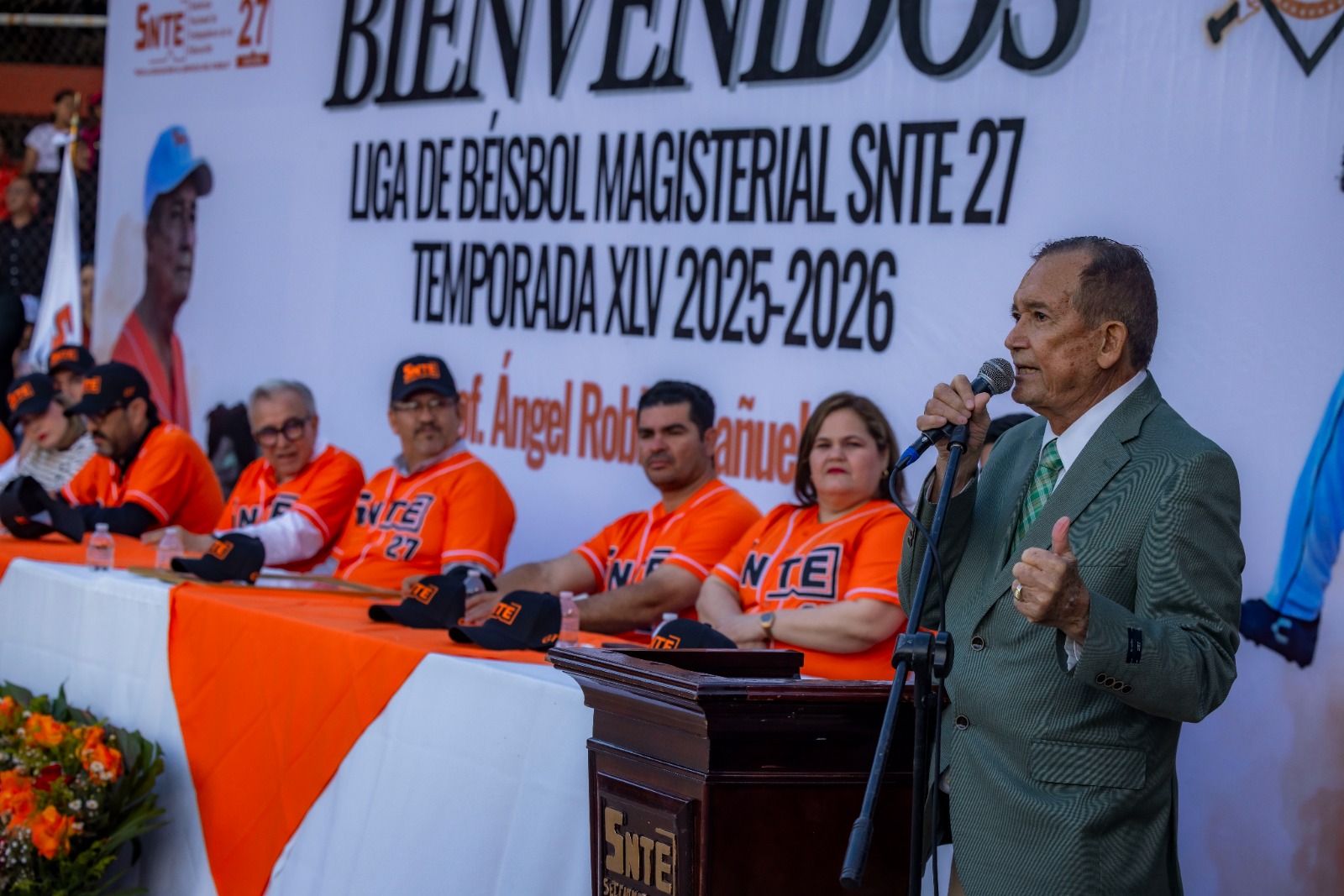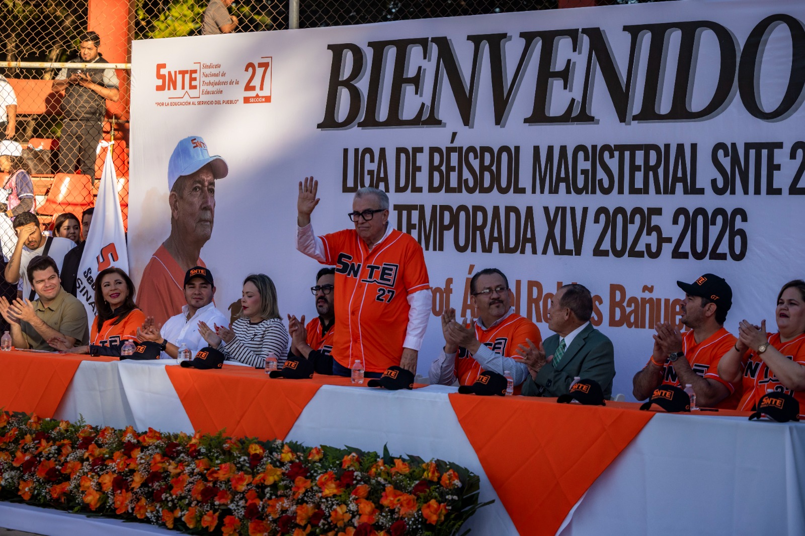 El gobernador Rocha, acompañado del secretario general de la sección 27 del SNTE, Genaro Torrecillas y del homenajeado Ángel Robles Bañuelos, destacó al deporte como una herramienta de sana convivencia que con fortaleza en equipo y determinación refuerza los valores de las y los estudiantes. Deseándoles el mejor de los éxitos a los equipos que compiten esta temporada.