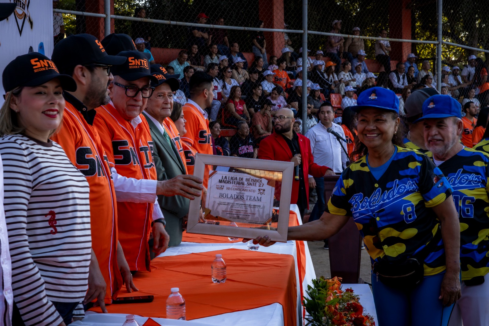 Asimismo, se entregaron reconocimientos a los equipos campeones y subcampeones Edición XLIV 2024 – 2025 de la tradicional liga magisterial SNTE 27.