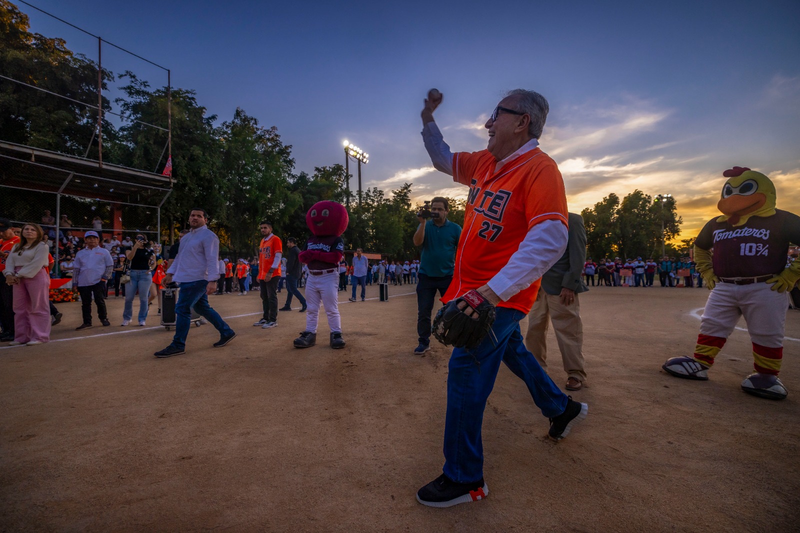 A todos los saludo, los felicito, les agradezco que estén aquí. Aquí lo importante, es que pensemos que van a jugar, van a tirar la pelota y luego van a cachar y van a batear, y finalmente se hacen las competencias, unas competencias muy amistosas, de mucho compañerismo y, sobre todo, el encuentro que no lleva a tener recuerdos muy importantes como los que tiene el maestro Robles”, precisó el gobernador Rocha.
