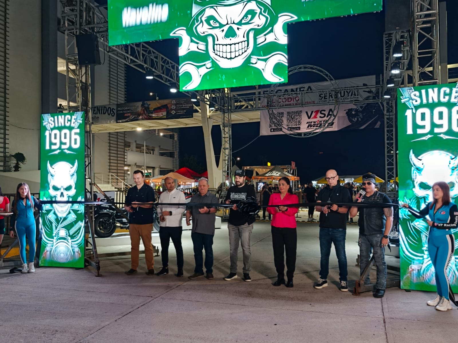 El acto inaugural fue encabezado por Alejandro Higuera Osuna, subsecretario de Industria de Reuniones, en representación de la secretaria de Turismo estatal, Mireya Sosa Osuna; Ángel Fernando Arballo, Oficial Mayor del Ayuntamiento; Jesús Tirado, director del Consejo Consultivo de la Semana Internacional de la Moto; Francis Cazarez, presidenta de la Canaco Mazatlán; José Alberto Ureña, director del Mazatlán International Center y José Ramón Manguart, presidente de la Asociación de Hoteles Tres Islas.