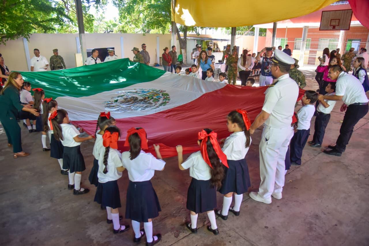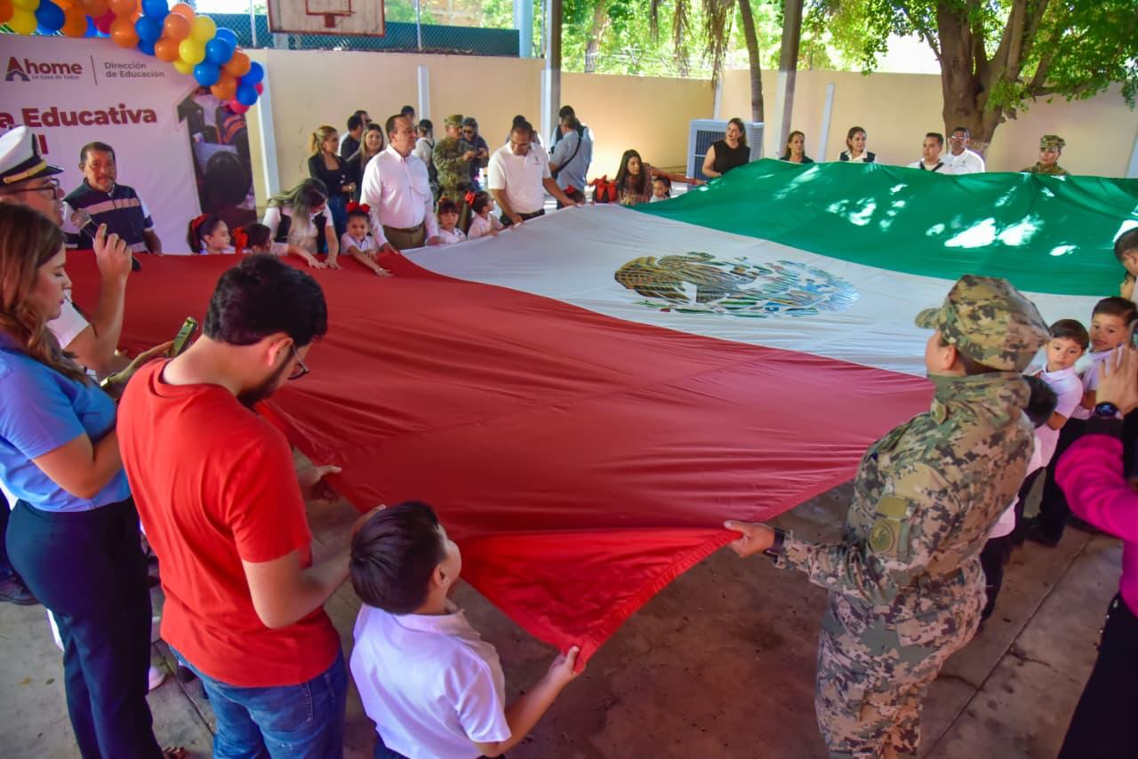 Para nosotros lo más importante son ustedes que asisten todos los días a cumplir con sus deberes a las escuelas de Ahome, Me da gusto que conozcan muy bien los valores y los símbolos naciones”.