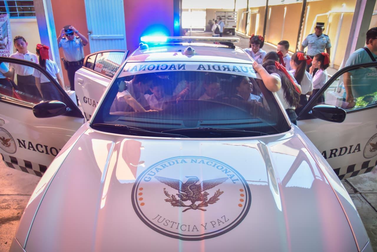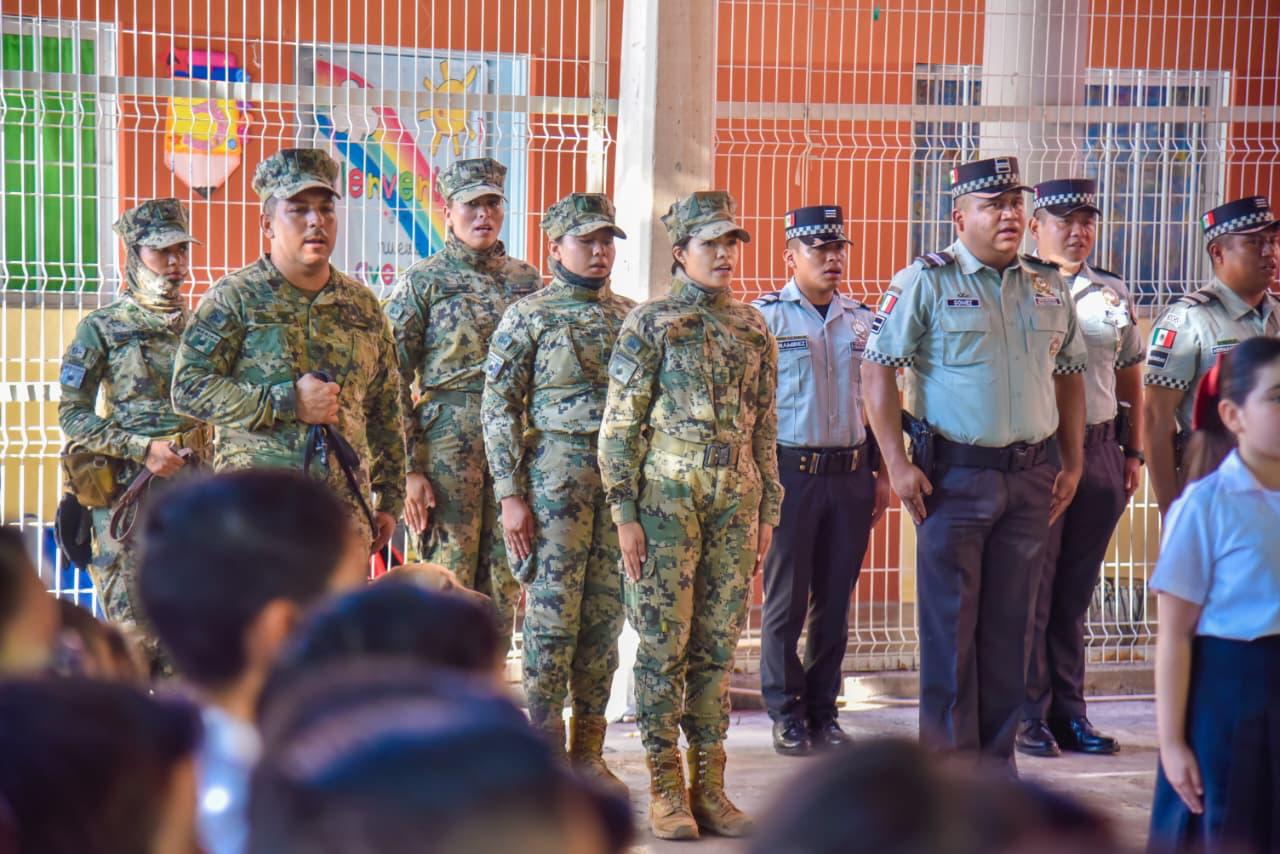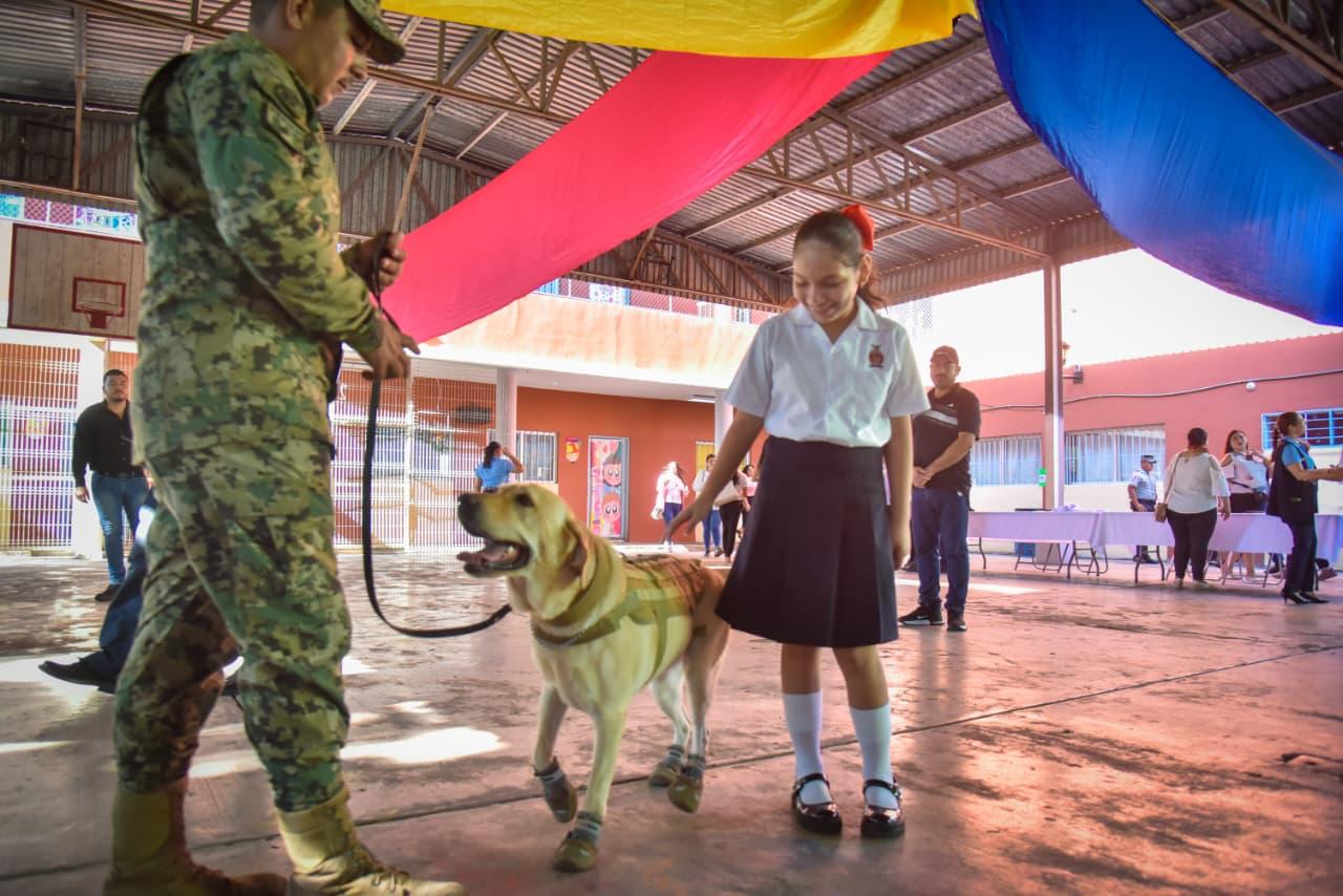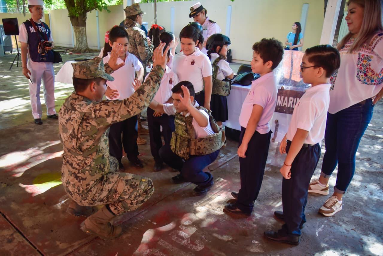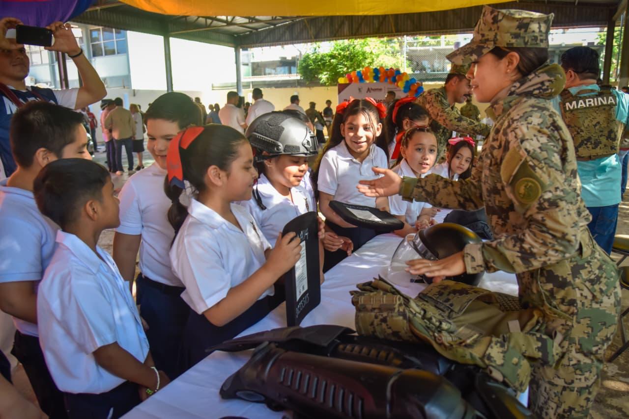 Después del protocolo del evento, los estudiantes participaron en actividades formativas e interactuaron con personal de las Fuerzas Armadas quienes les mostraron una Bandera de México Monumental, equipo táctico y binomios caninos de la Guardia Nacional, 8va. Zona Naval Militar y Ejercito Mexicano.