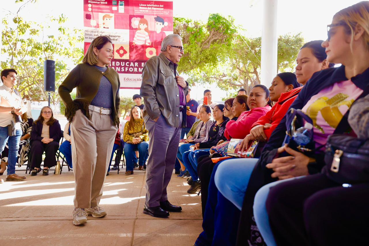 Para ello, el mandatario estatal visitó la plazuela de la sindicatura de Villa Ángel Flores, mejor conocida como La Palma, acompañado por la secretaria general de Gobierno, Yeraldine Bonilla Valverde, donde fue recibido por el presidente municipal de Navolato, Jorge Rosario Bojórquez Berrelleza; por la secretaria de Educación Pública y Cultura, Gloria Himelda Félix Niebla; y por la coordinadora del Programa de Becas del Bienestar en Sinaloa, Denisa Magdalena Flores Ojeda, y los padres de familias que recibieron su tarjeta del Bienestar.