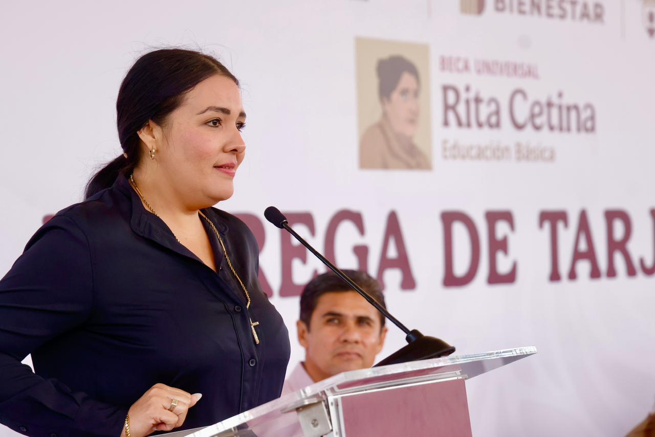 A los padres de familia, les dijo la secretaria de Educación que mediante el otorgamiento de esta Beca Rita Cetina, se promueve la permanencia de sus hijos en las aulas, para que no interrumpan su trayectoria educativa, donde el gobierno de la Cuarta Transformación quiere acompañarlos en esta tarea de formación de sus hijos.