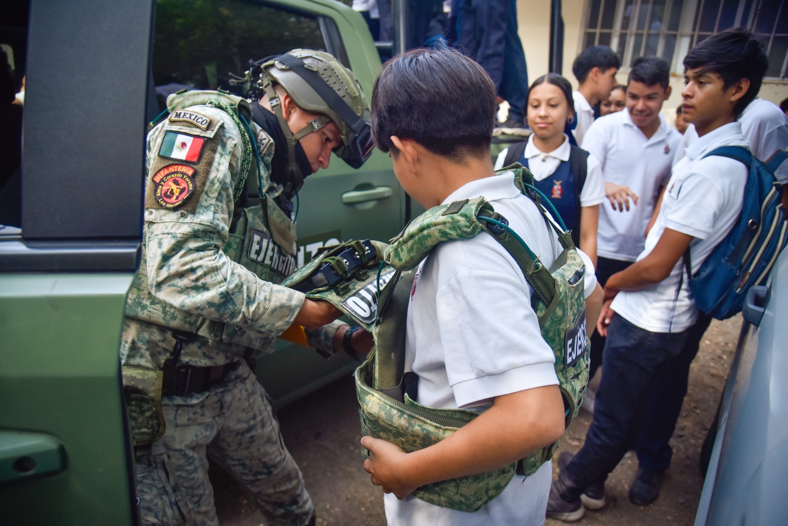 A estos jóvenes que todavía están pensando qué va a ser el día de mañana, a estos jóvenes que efectivamente son el futuro de México, pero ese futuro será mejor si son jóvenes que tienen una vida feliz, si son jóvenes que no tienen violencia. Quiero decirles que una de las grandes responsabilidades de la autoridad del municipio es combatir la violencia, y es trabajo de todas y de todos combatirla”.