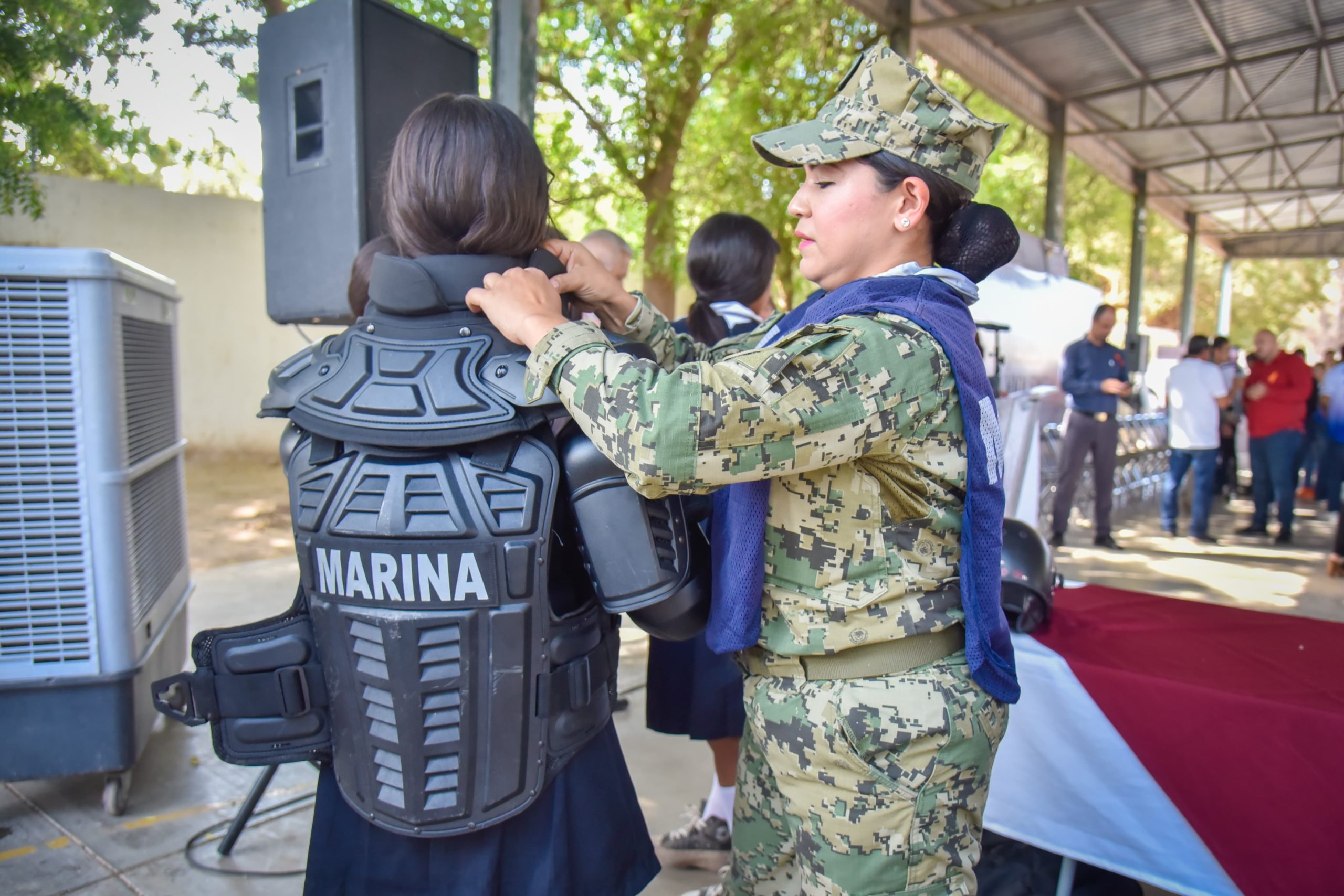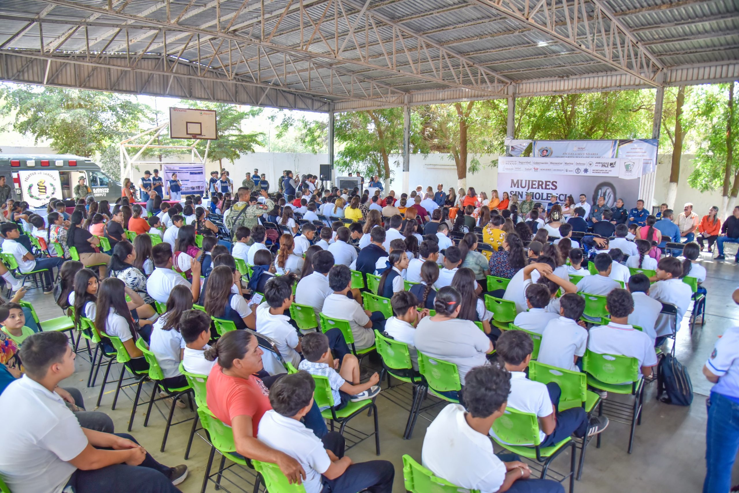 Villa de Ahome, Ahome, Sinaloa. – En un acto significativo para la comunidad educativa y las instituciones comprometidas con la seguridad y el bienestar social, se llevó a cabo este miércoles el arranque oficial de la campaña permanente Jornadas por la Paz “Mujeres sin violencia”, en las instalaciones de la Escuela Secundaria Margarita Maza de Juárez, ubicada en la Villa de Ahome.