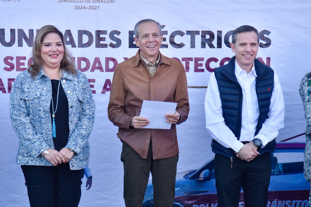 Y adicionalmente se entregó de manera oficial tres camionetas patrullas equipadas a la Secretaría de Seguridad y Protección Ciudadana (SSyPC), dos para la ciudad y una para las sindicaturas, que fueron donadas por el Gobierno del Estado de Sinaloa.