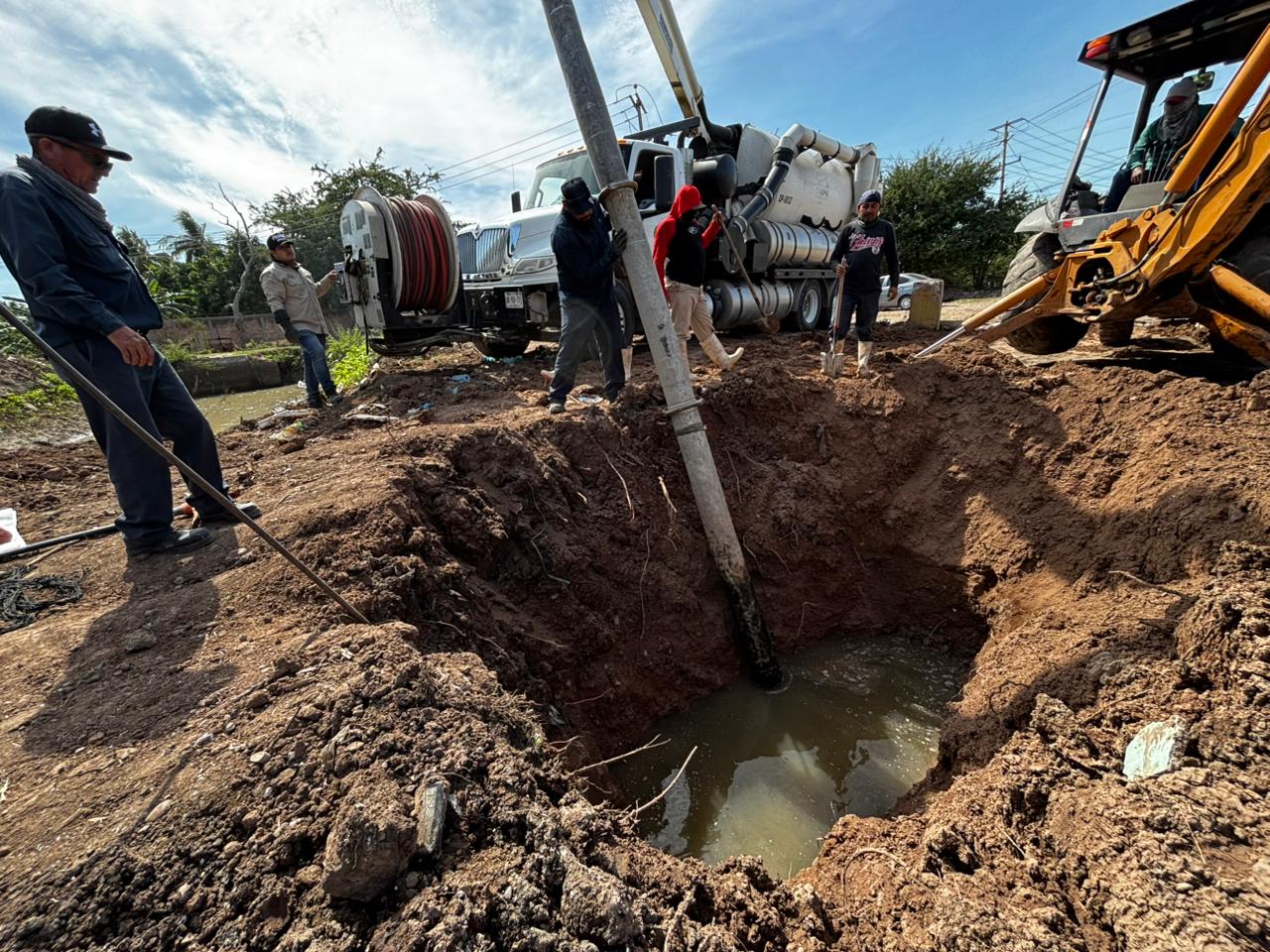 Los Mochis, Ahome, Sinaloa. – Por indicaciones del Presidente Municipal, Antonio Menéndez de Llano Bermúdez, la Junta de Agua Potable y Alcantarillado del Municipio de Ahome atendió de manera inmediata una afectación sanitaria en el subcolector de la colonia Rosendo G. Castro.