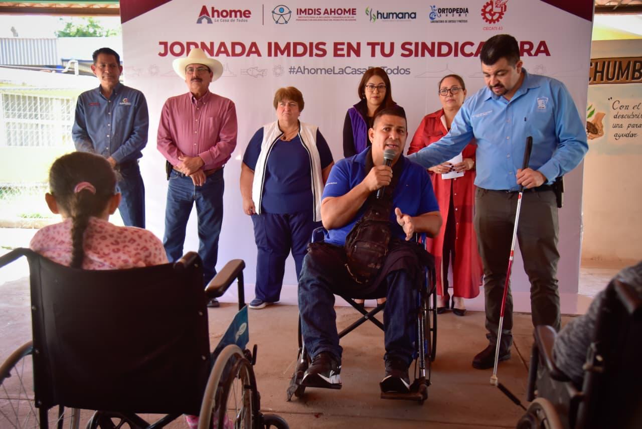 Los Mochis, Ahome, Sinaloa. –Con el llamado a aprovechar y difundir los servicios que se brindan directamente en las comunidades, iniciaron las “Jornadas IMDIS en tu Sindicatura” en el Ejido Mochis, un esfuerzo del Ayuntamiento de Ahome para acercar atención integral a personas con discapacidad, especialmente a quienes enfrentan dificultades para trasladarse a la ciudad.