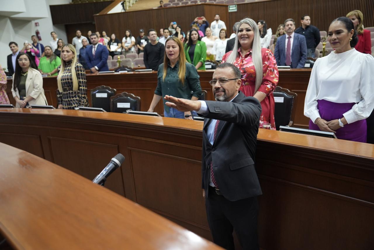 Culiacán, Sinaloa. – La presidenta de la Mesa Directiva del Congreso del Estado de Sinaloa, Yeraldine Bonilla Valverde le tomó este martes la protesta de rigor a Juan Diego Aranzubia Iturrios como Diputado Suplente en Funciones de Propietario, quien entra en lugar del diputado Antonio Menéndez de Llano Bermúdez.