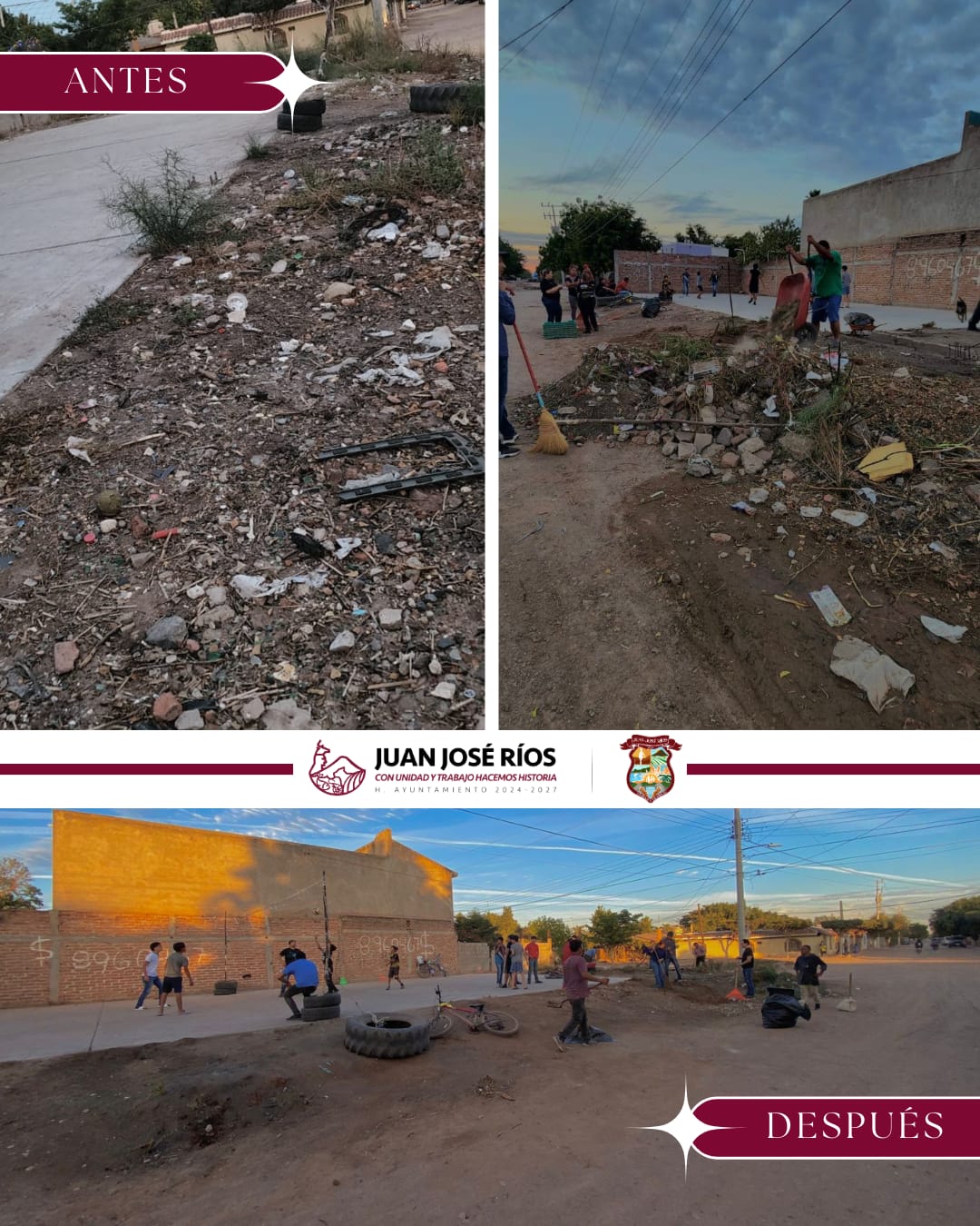 Juan José Ríos, Sinaloa. – En atención a una solicitud realizada por un grupo de jóvenes, el H. Ayuntamiento de Juan José Ríos, a través de la Dirección de Juventud encabezada por Juan de Dios Cota Apodaca, llevó a cabo este fin de semana una jornada de limpieza y mantenimiento de un espacio de recreativo juvenil ubicada en la avenida Maquicoba, con el objetivo de recuperarla para la convivencia y el deporte.