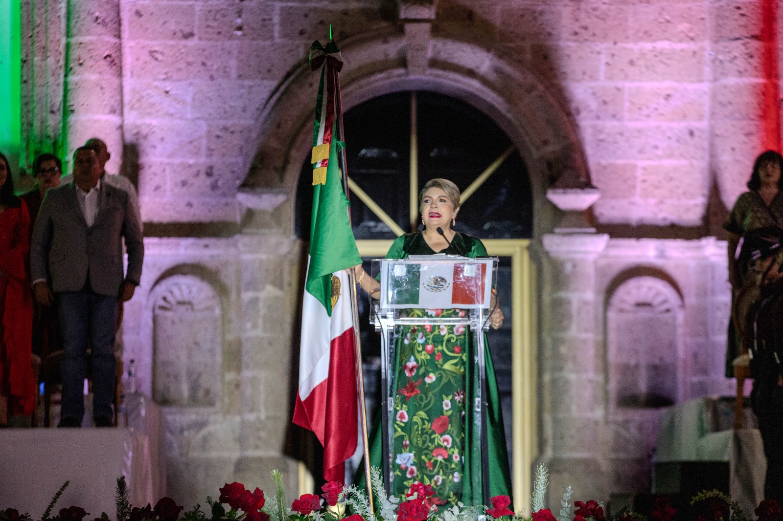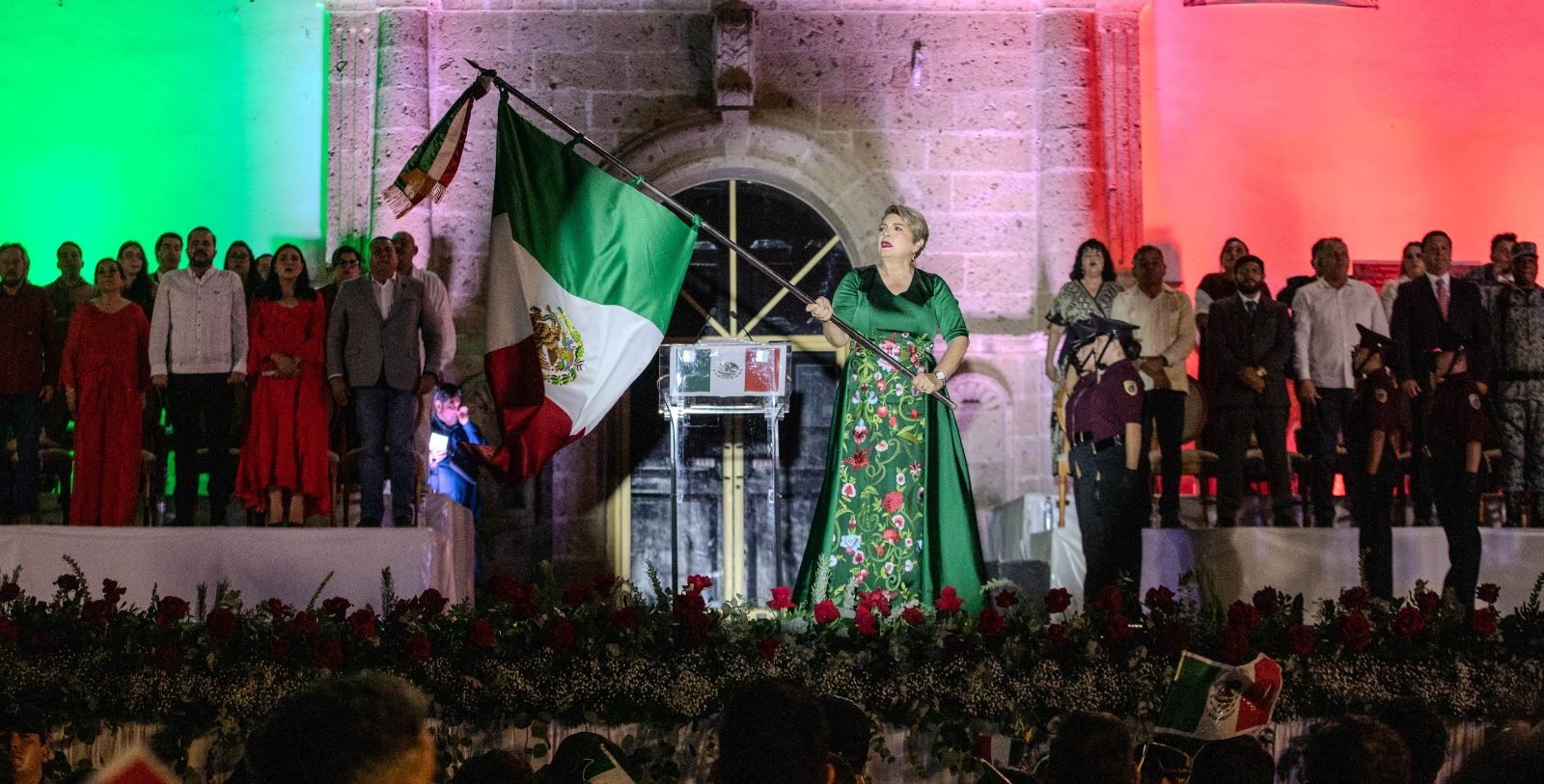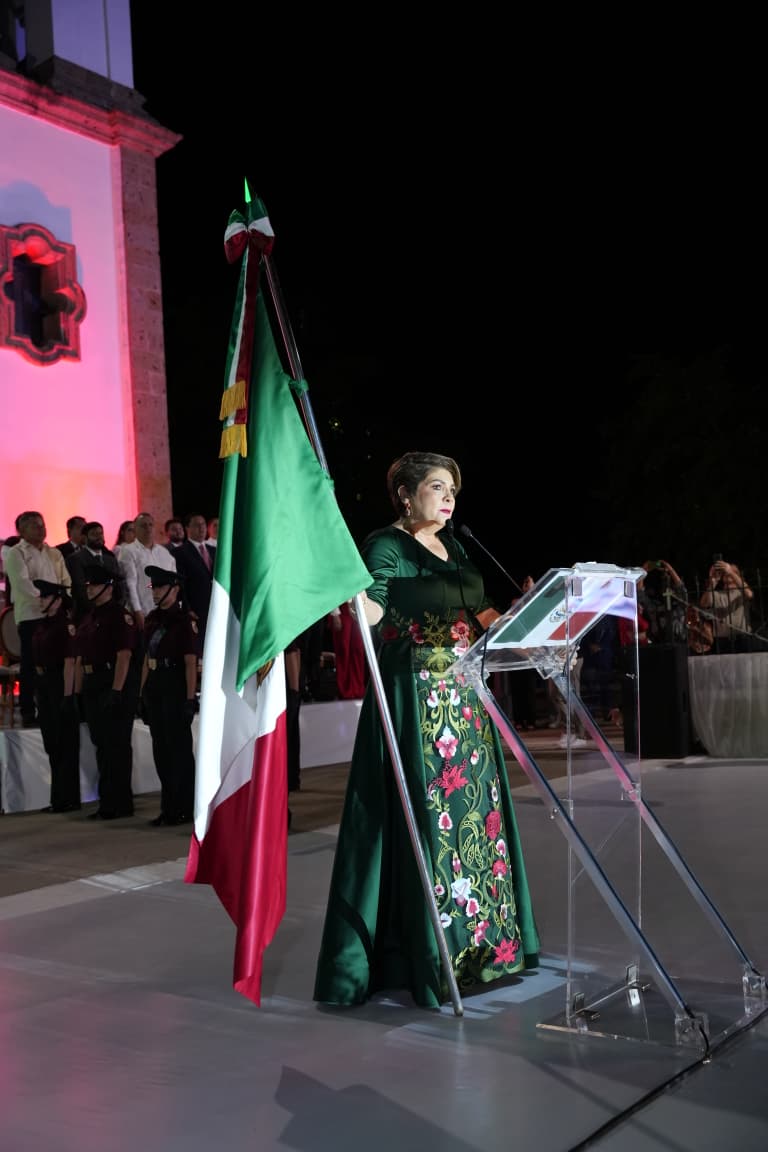 Guasave, Sinaloa. – En una gran fiesta del pueblo de Guasave y con la presencia de funcionarios, regidores, legisladores y sectores productivos, la presidenta municipal, Cecilia Ramírez Montoya, dio su primer Grito de Independencia, acompañada por su esposo, Manuel León Perea, en el atrio de la Iglesia de Nuestra Señora del Rosario, en la plazuela Miguel Hidalgo, donde todas las familias disfrutaron de un evento muy emotivo.