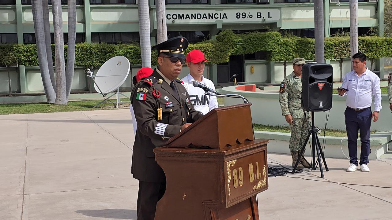 San Miguel Zapotitlan, Ahome. – En conmemoración a la fuerza y lucha de todos los Mexicanos frente a la Batalla de Puebla, la mañana de este lunes se llevó a cabo el acto cívico correspondiente al 5 de mayo en el 89 Batallón de Infantería, encabezado por el Coronel Rodrigo Miranda Castañeda, rindiéndole honores a nuestro lábaro patrio y realizando la toma de protesta de bandera de los soldados del Servicio Militar Nacional.