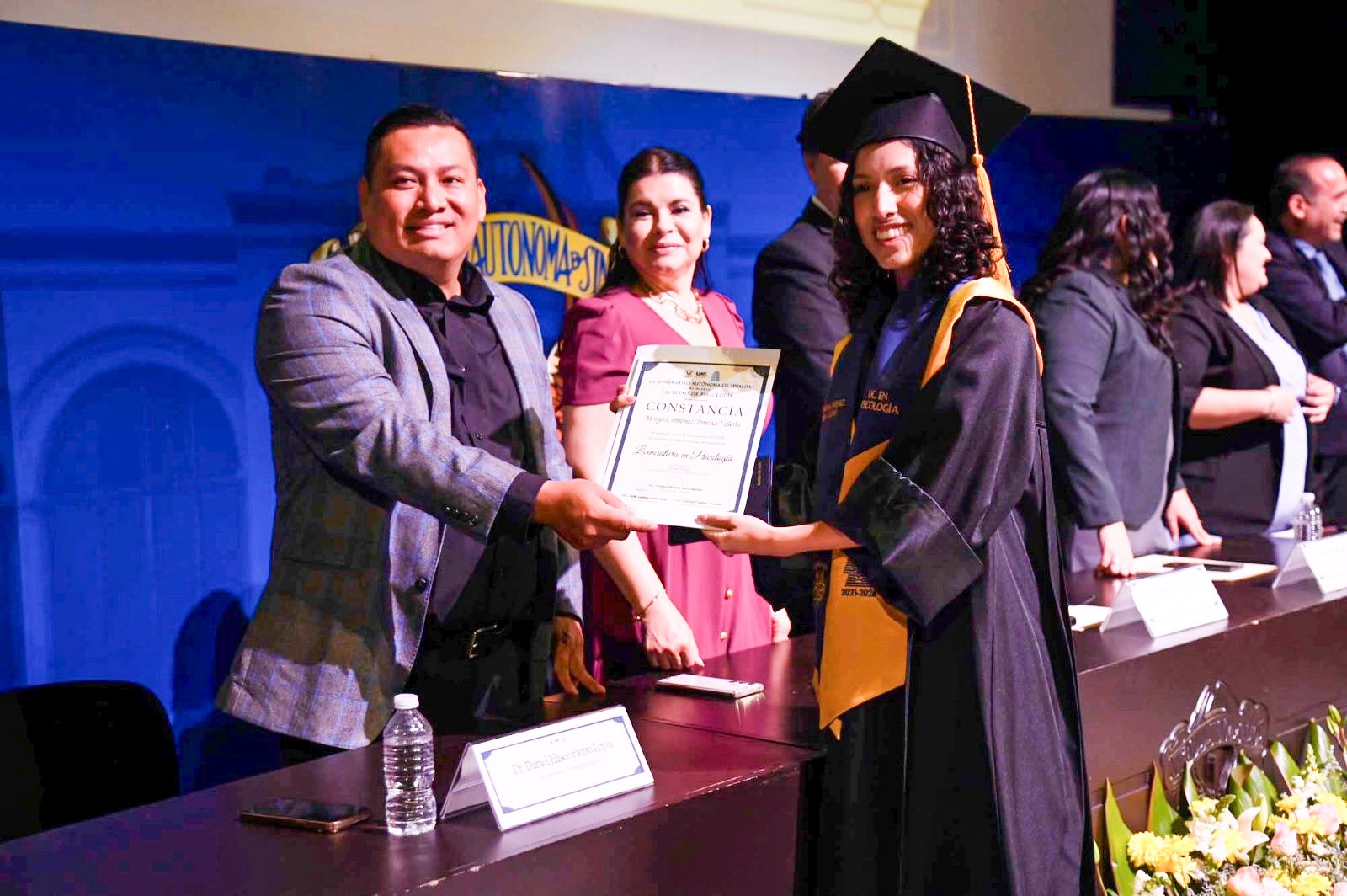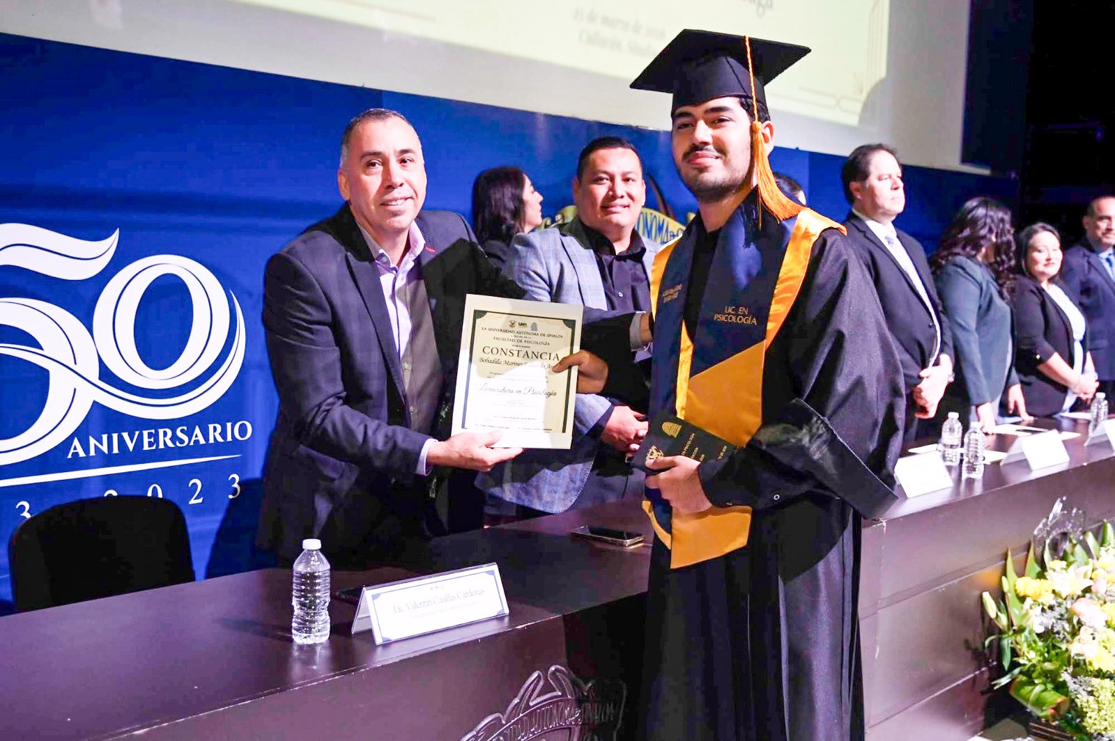 “Egresar de esta disciplina implica algo más que ejercer una profesión; implica asumir el compromiso de actuar con ética, con respeto y con una profunda conciencia del impacto que tiene cada palabra, cada escucha y cada intervención en la vida de otros. Nos sentimos profundamente honrados de que hayan confiado en esta institución, en la Universidad Autónoma de Sinaloa, para formarse, crecer y construir el inicio de su vida profesional”, manifestó.