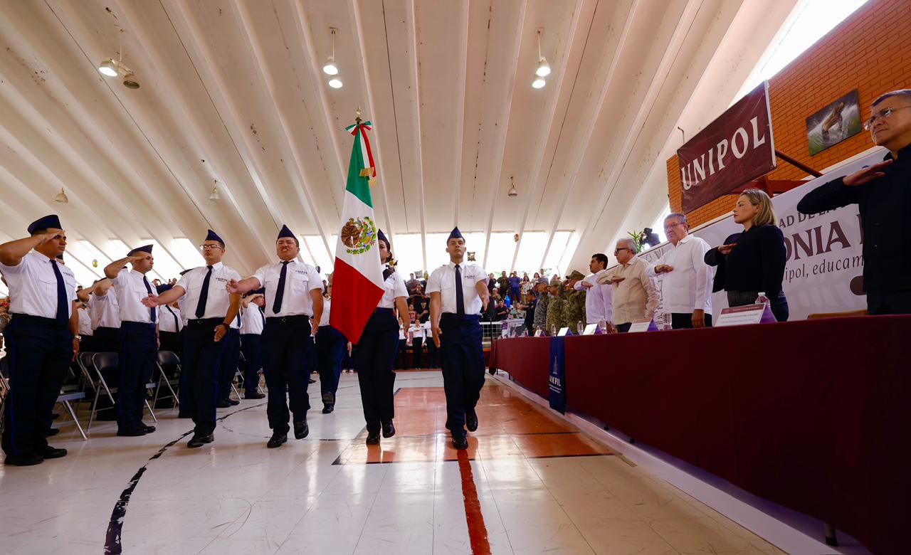 Quienes egresan como policías de proximidad estatal y municipal, asumen el compromiso de estar cerca de la gente, escuchar, prevenir y resolver conflictos con sensibilidad social, respeto a los derechos humanos y apego irrestricto a la ley. Su labor será el primer contacto entre el estado y el municipio con la ciudadanía. Sean el rostro cercano de la autoridad y de construir confianza con la población, de su actuar dependerá reforzar la certidumbre y cimentar comunidades más seguras y solidarias. A quienes se integran como policías penitenciarios, les corresponde una misión igualmente trascendental, garantizar la seguridad y gobernabilidad de los centros de reinserción social, velando por el orden, la legalidad y el respeto a la dignidad humana”, enfatizó el rector de la UNIPOL.
