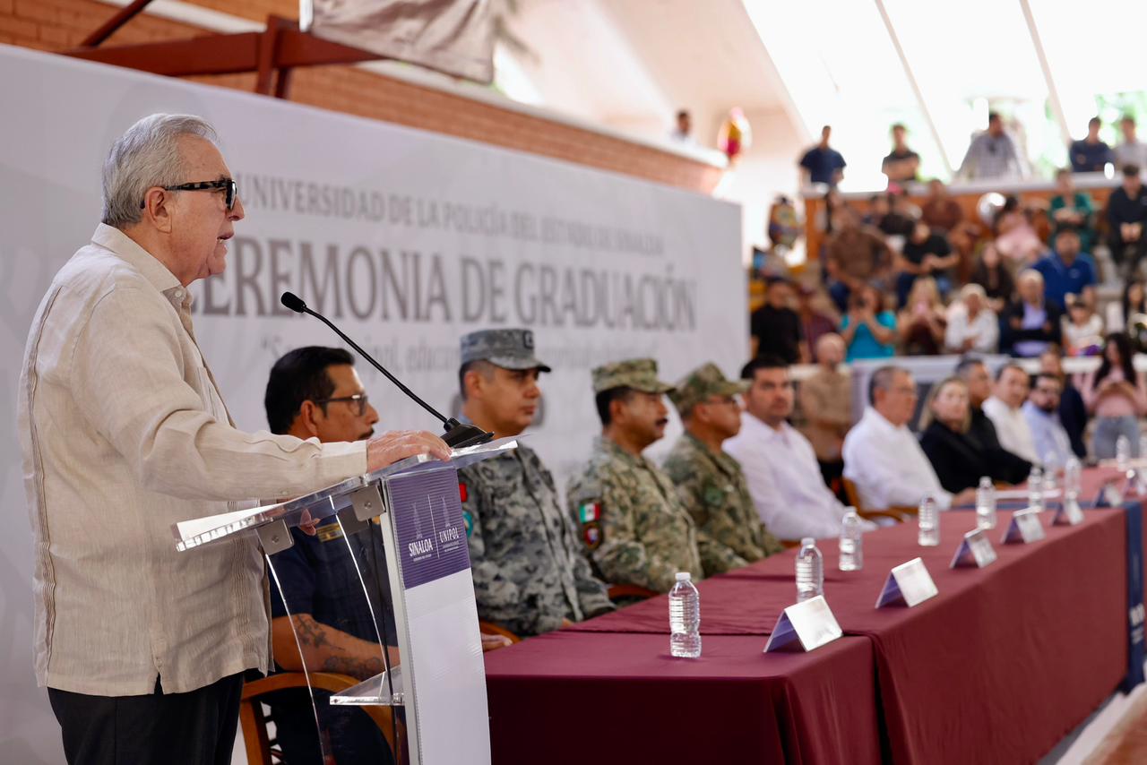 Al felicitar a los graduados, el gobernador Rocha, refrendó su respeto y admiración, para destacar que hoy más que nunca Sinaloa requiere de policías íntegros, honestos y bien preparados que protejan y sirvan a la comunidad con respeto, confianza y autoridad.