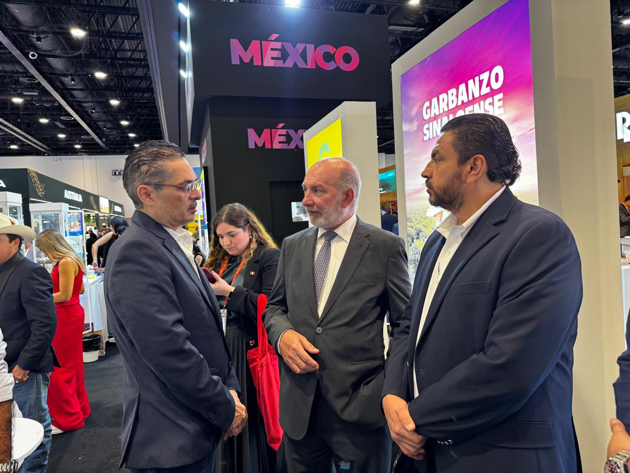 Encabezando y respaldando la delegación de productores y comercializadores de garbanzo en la Expo Gulfood de Dubai 2026, el funcionario estatal agradeció el apoyo del embajador mexicano en Emiratos Arabes Unidos y su equipo, ya que han sido un soporte muy importante en la relación que se ha tenido con nuevos compradores que de manera exitosa han estado visitando el stand sinaloense.