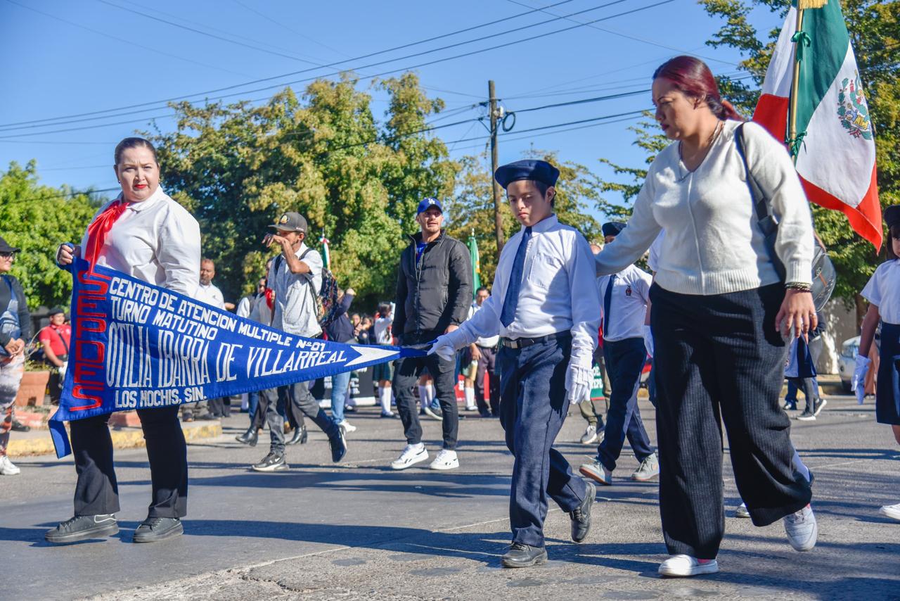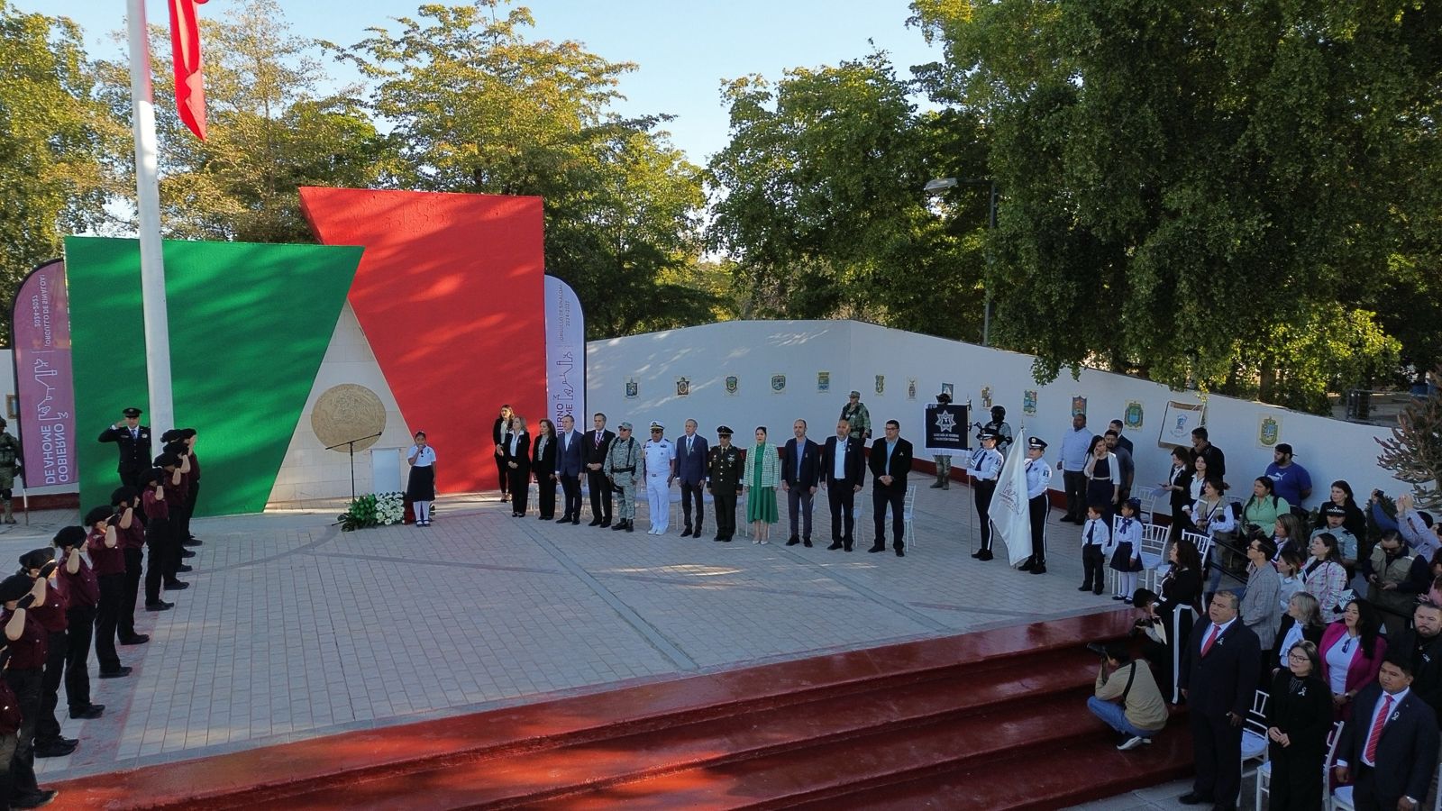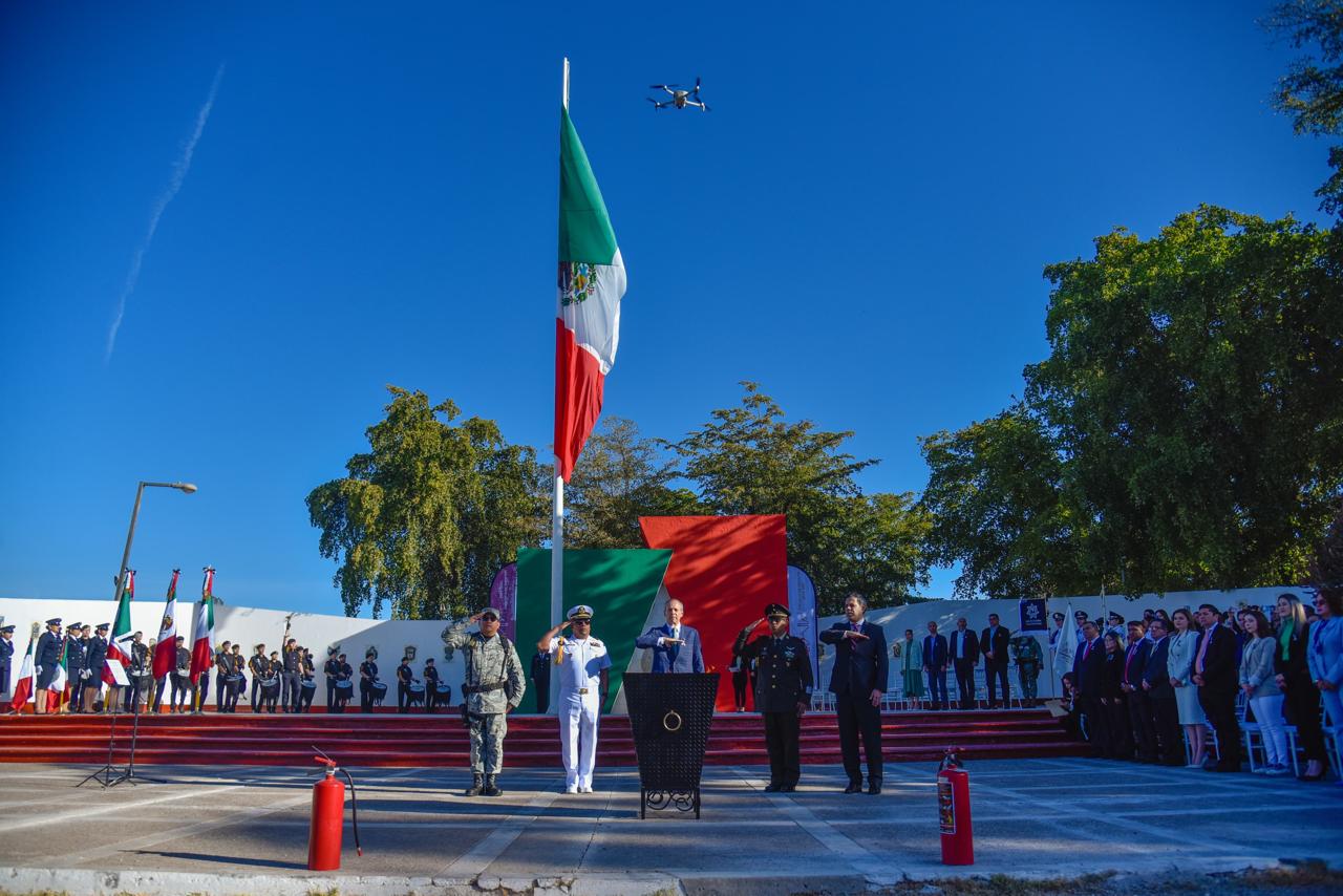 Los Mochis, Ahome, Sinaloa. –La Bandera de México es catalogada como una de las más bellas del mundo, y cuenta con un Récord Guinness por estar colocada en el Asta Bandera más alto de América, con más de 120 metros. Y este emblemático día para todos los mexicanos, autoridades y ciudadanos se congregaron para conmemorar el 85 aniversario del Día de la Bandera Nacional, con Desfile de Escoltas y Banderines.