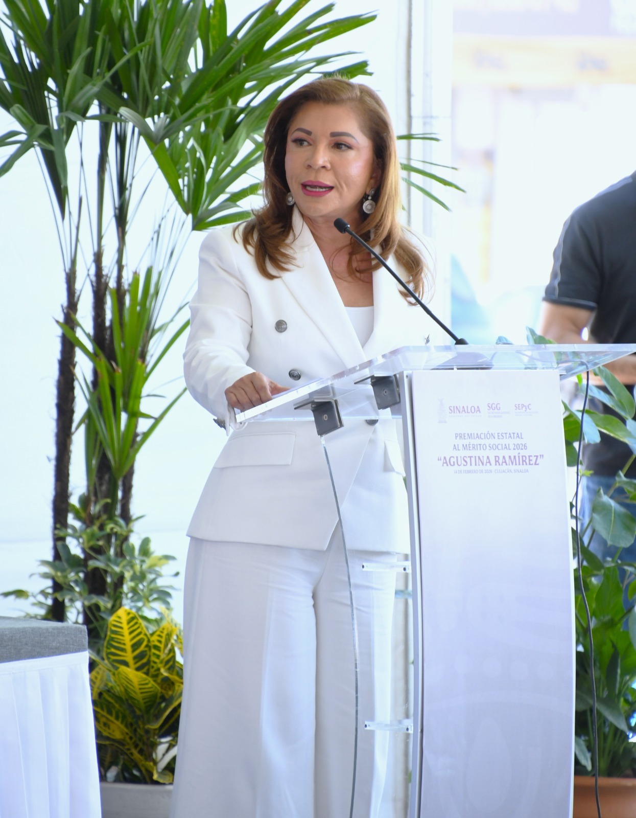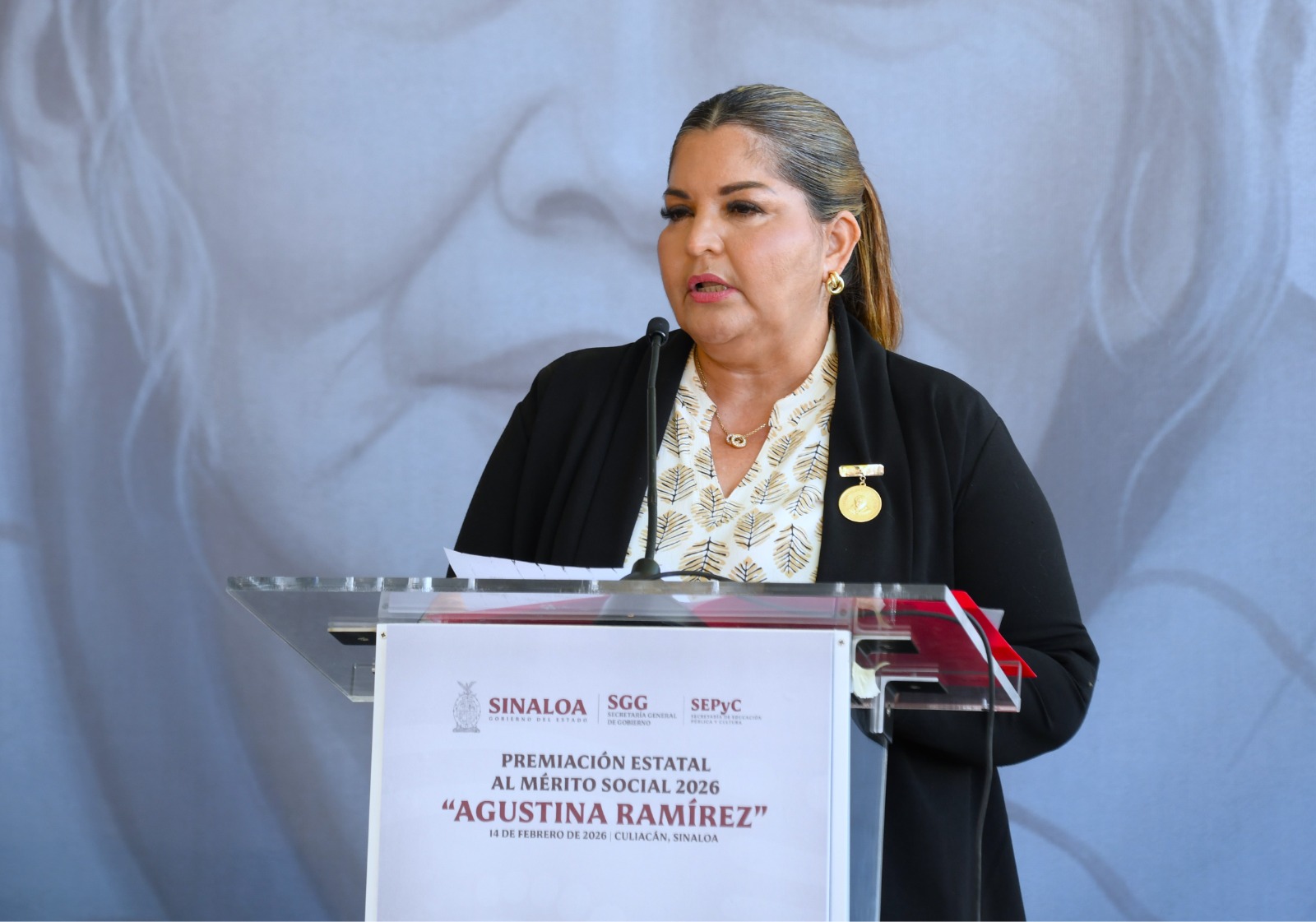Culiacán, Sinaloa. – Con la representación del Gobernador, Rubén Rocha Moya, la Secretaria de Educación Pública y Cultura, Gloria Himelda Félix Niebla, entregó este sábado el Premio Estatal al Mérito Social “Agustina Ramírez” 2026 a la Profesora Rural Ramona Calderón Hernández, en reconocimiento a su extraordinaria labor docente en las comunidades más aisladas de Sinaloa.