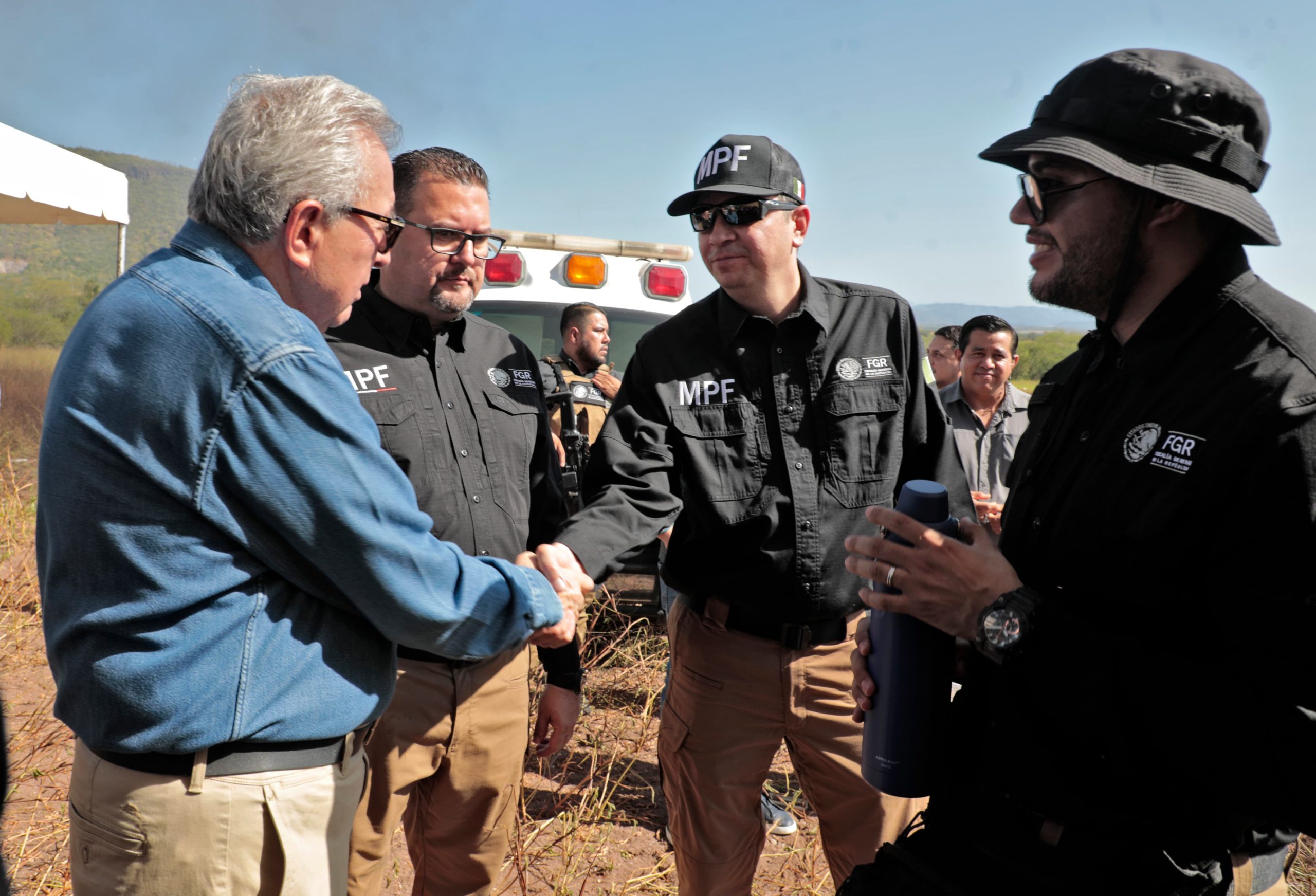 Acompañaron al Gobernador Rocha, Santos Gerardo Soto, comandante de la Novena Zona Militar; Crisóforo Martínez Parra, coordinador territorial de la Región Noroeste de la Guardia Nacional; Claudia Zulema Sánchez, Fiscal del estado de Sinaloa; Jesús Felipe Juárez Patiño, en representación de la Secretaría de Gobierno; Gerardo Edmundo Ledezma, representante de la Cuarta Región Naval, así como Beatriz Aguiar Monroy, comisionada de la Comisión Estatal para la Prevención de Riesgos Sanitarios en Sinaloa; Martín Martínez Villafranca, jefe de la Policía Federal Ministerial; Leticia Gonzáles Galicia, coordinadora regional de Servicios Periciales; personal del Órgano Interno de Control y Fiscalía General de la República, quienes tienen la encomienda de vigilar y verificar el correcto desarrollo del evento.