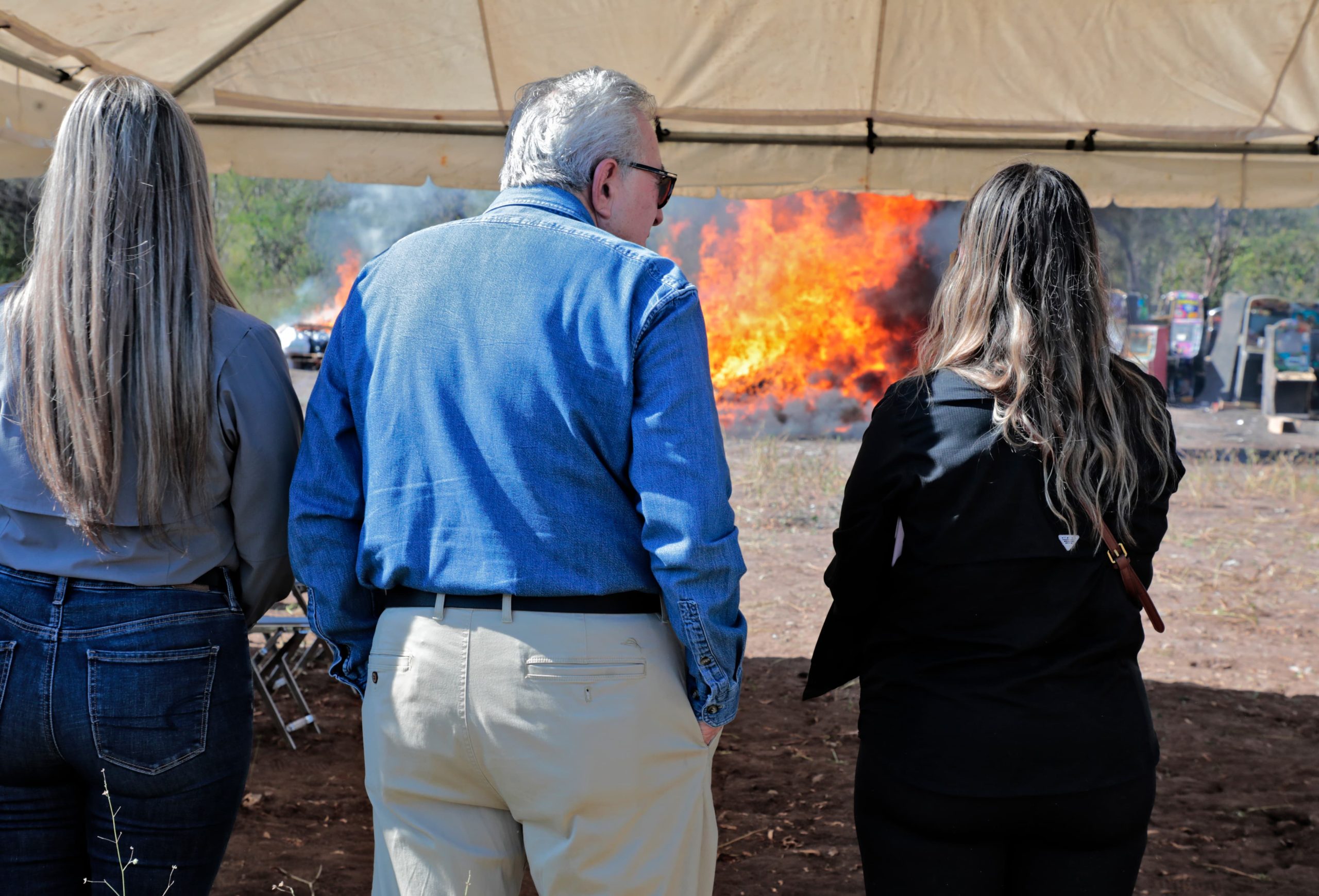 *En presencia del mandatario estatal, se incineraron 1.9 toneladas y 205 litros de estupefacientes y se destruyeron más de 300 objetos del delito decomisados por la FGR, Defensa, Marina, Guardia Nacional y SSyPC