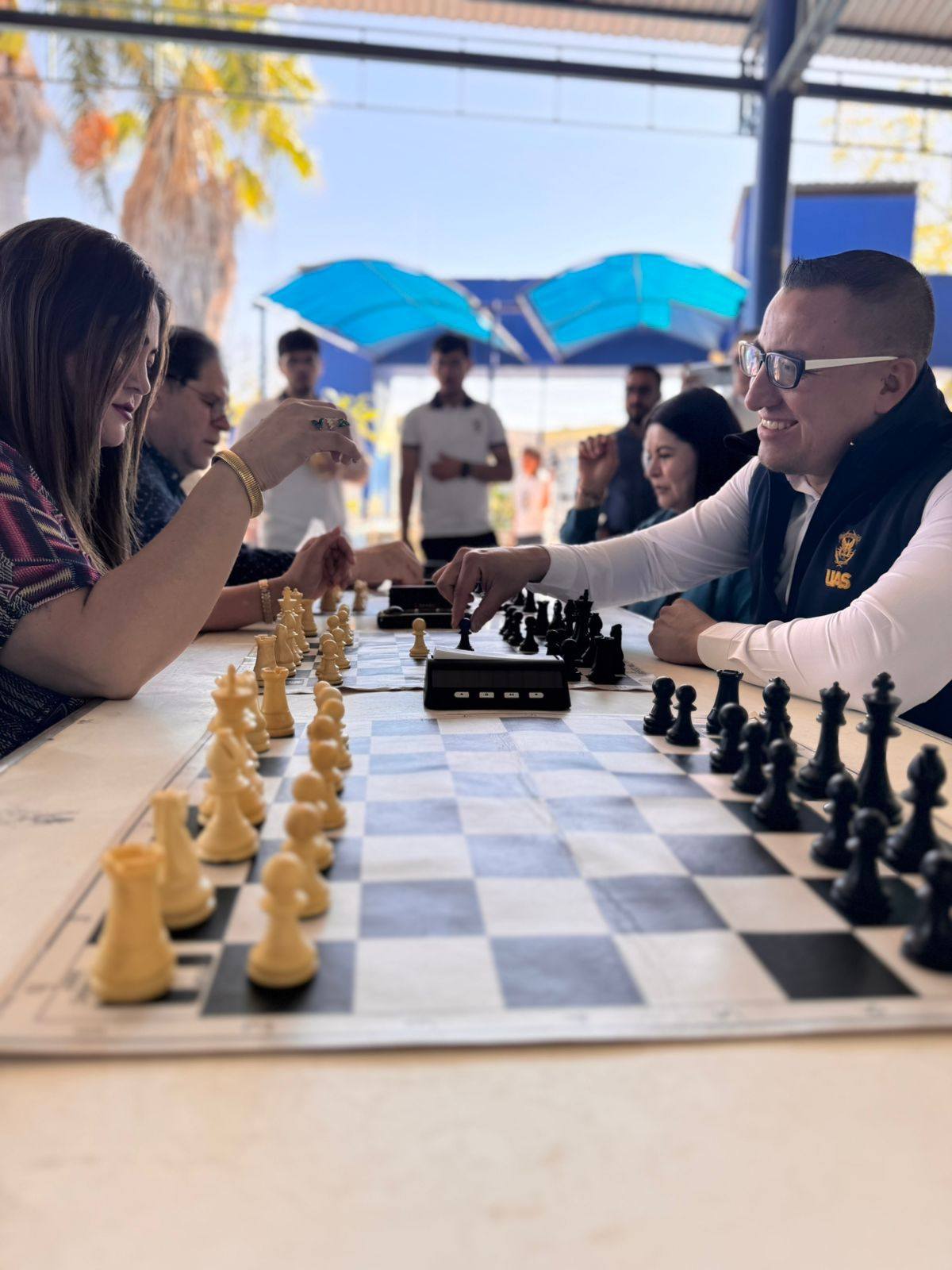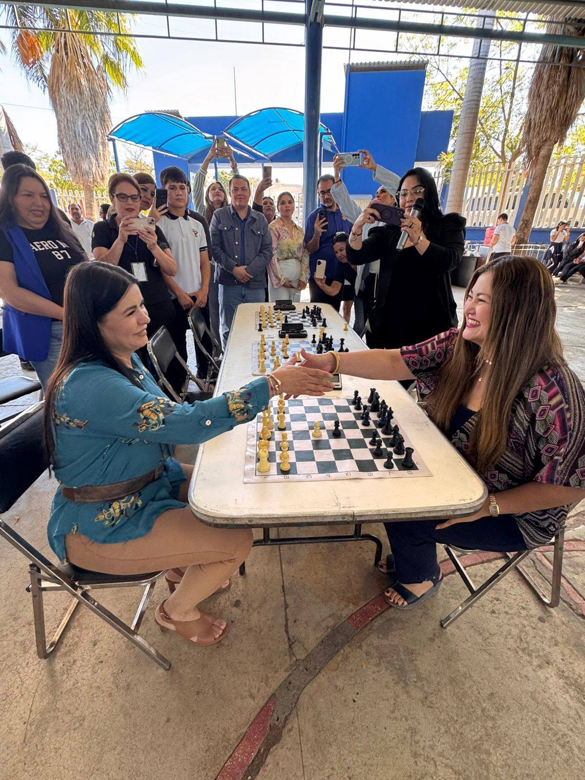 Fueron la doctora Sofía Angulo Olivas y la maestra Marisol Mendoza Flores las encargadas de realizar el primer movimiento en el tablero en el Cuarto Torneo Estatal de Ajedrez 2026.
