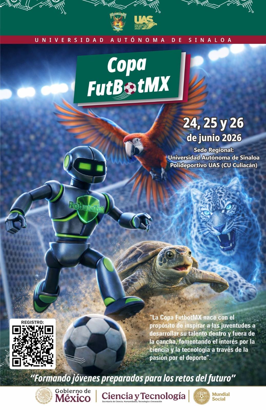 La Universidad Autónoma de Sinaloa (UAS) se prepara para vivir la fiebre del fútbol uniendo talento, ciencia, tecnología y creatividad, al ser designada sede regional de la Copa FutBotMX. Este torneo es organizado por la Secretaría de Ciencia, Humanidades, Tecnología e Innovación (SECIHTI) del Gobierno Federal.