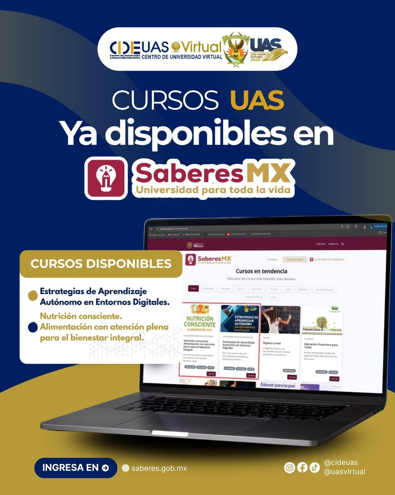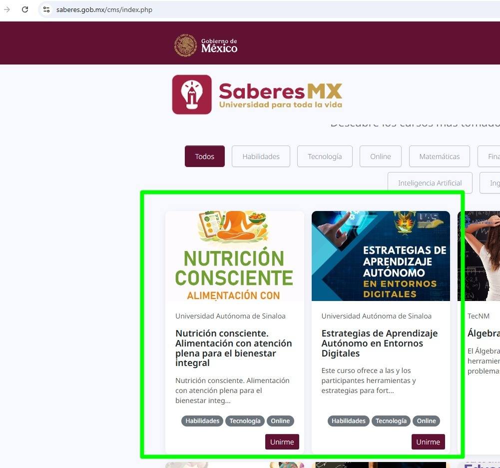 La Universidad Autónoma de Sinaloa (UAS), bajo la directriz del Rector, el doctor Jesús Madueña Molina, ha dado un paso firme en la consolidación de la educación en línea al integrar formalmente su conocimiento y experiencia académica en la plataforma Saberes MX de la Secretaría de Educación Pública (SEP). Esta oferta educativa digital ya se encuentra disponible para todo el país.