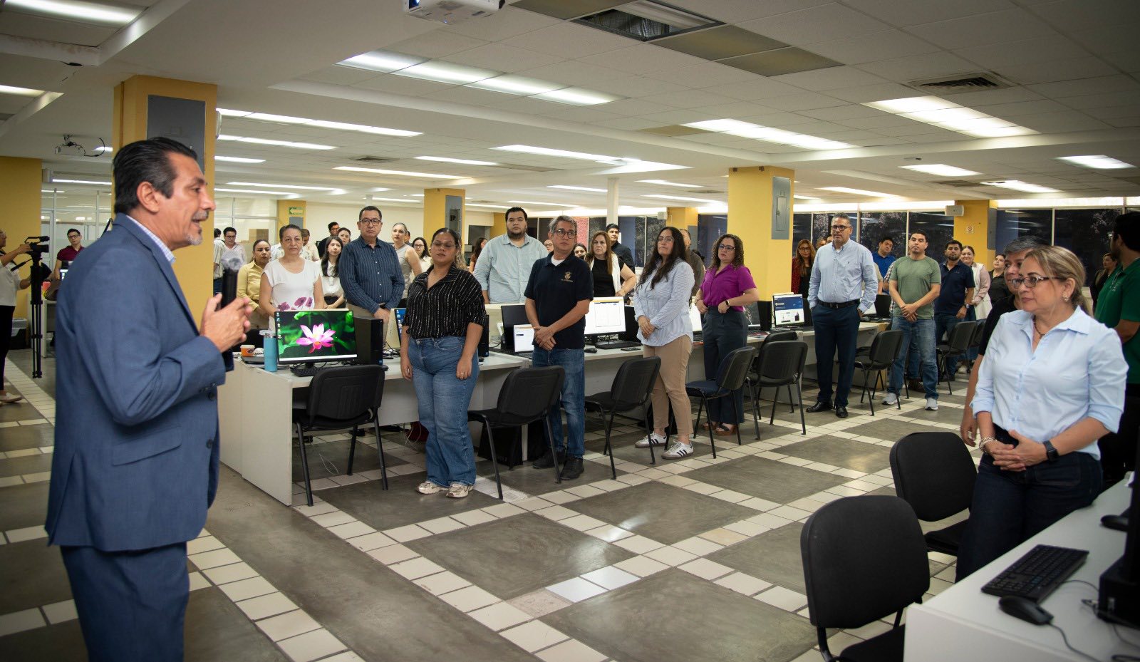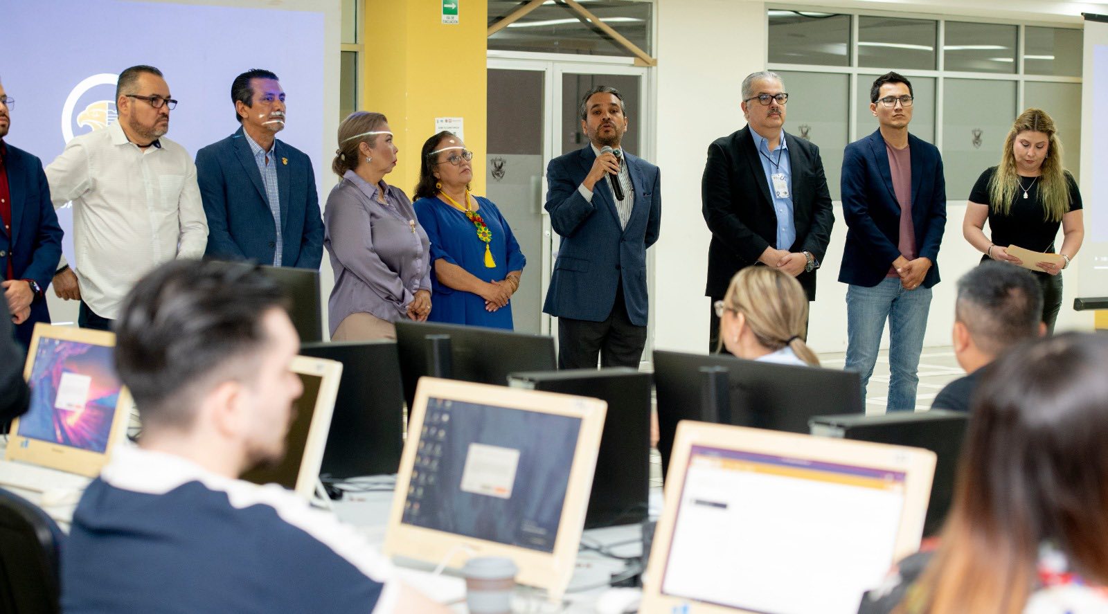 “El propósito es claro: el próximo ciclo escolar funcionará este sistema bimodal”, enfatizó ante la directora general de Educación Superior (DGES), la doctora Maricela Ramírez; la asesora de Rectoría, doctora María Concepción del Mazo Sandoval; y el director del Centro de Universidad Virtual, doctor Gabriel Roberto Pastor Angulo.