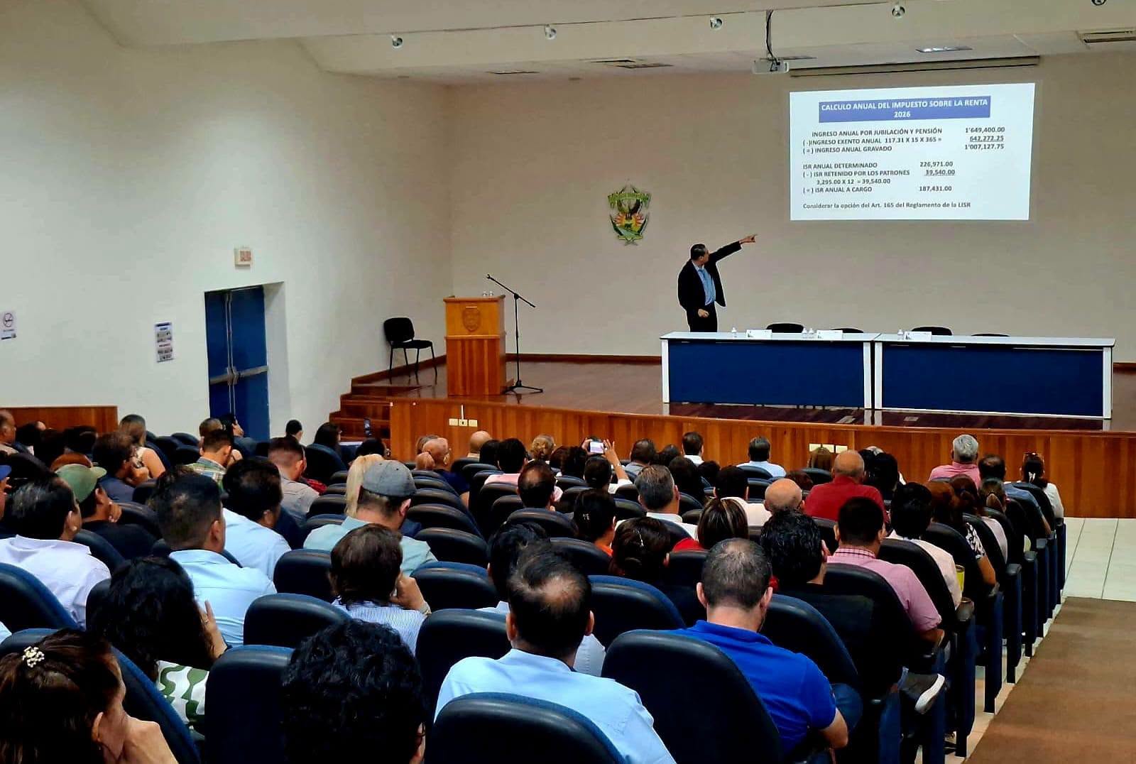 Con el objetivo de dar continuidad a las políticas de transparencia que promueve la Universidad Autónoma de Sinaloa (UAS), la comunidad participativa Del Bien Hacer y la Comunidad de Jubilados Universitarios realizaron la conferencia: “Declaración anual, aspectos importantes a considerar”, dirigida al personal académico y administrativo, tanto activos como jubilados, a cargo del experto en temas fiscales, el doctor Eleazar Angulo López.