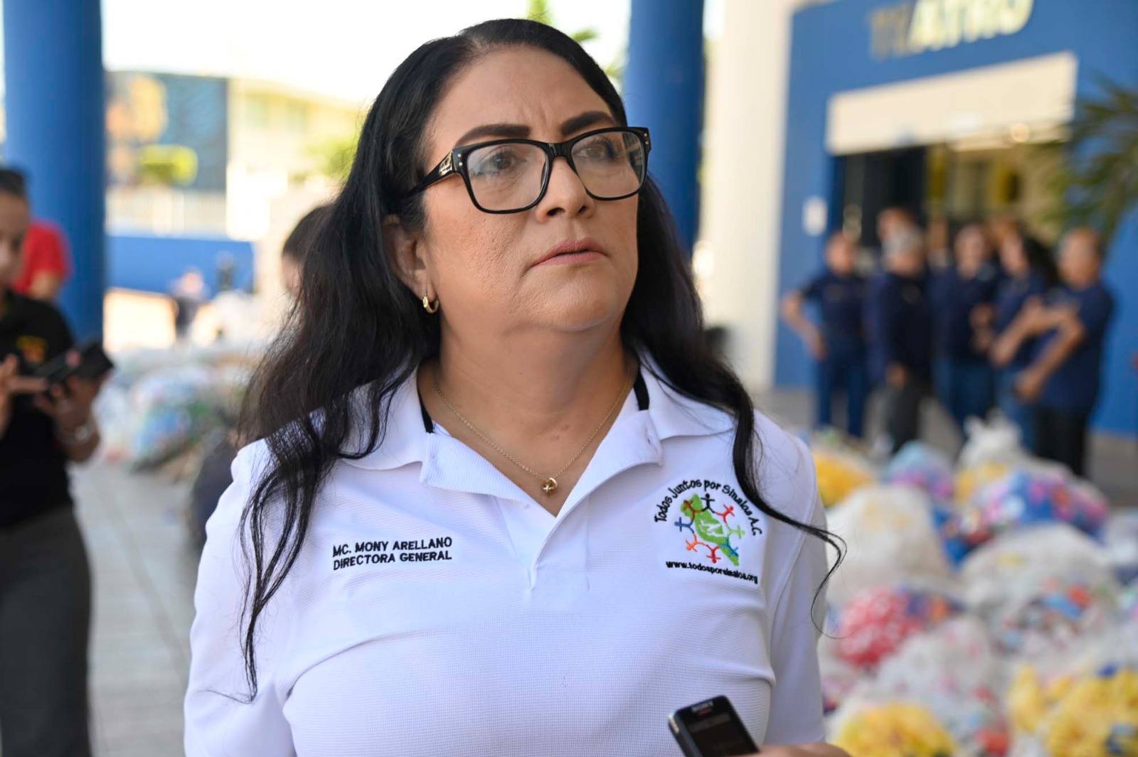 Ramona Arellano Piña, directora de “Todos Juntos por Sinaloa A.C.”, recibió el donativo de manos de la doctora Sofía Angulo y de la maestra Maricela Pérez Carrillo, directora del Servicio Social Universitario. Arellano Piña agradeció la colaboración de la máxima casa de estudios sinaloense, destacando que la labor de los brigadistas es invaluable en las comunidades que visitan, y que estos donativos permitirán ampliar el alcance de su ayuda.