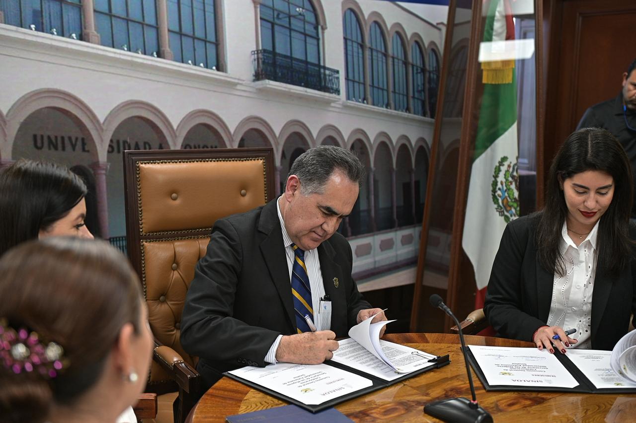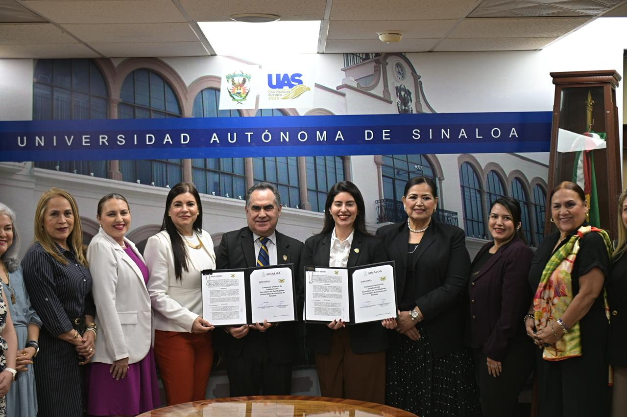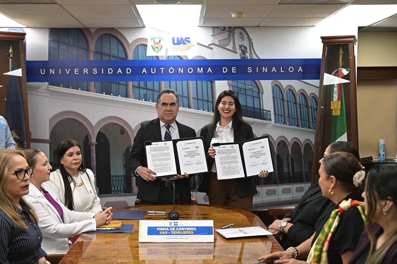 Culiacán, Sinaloa. – La Secretaría de las Mujeres de Sinaloa y la Universidad Autónoma de Sinaloa (UAS) firmaron este martes un convenio de colaboración con el objetivo de establecer las bases de coordinación, colaboración y apoyo entre ambas instituciones para desarrollar programas académicos de interés mutuo en materia de docencia, investigación y extensión cultural que contribuyan al pleno desarrollo social, económico y político que permita el promover la igualdad sustantiva, la perspectiva de género, la formación integral y profesional de las sinaloenses.