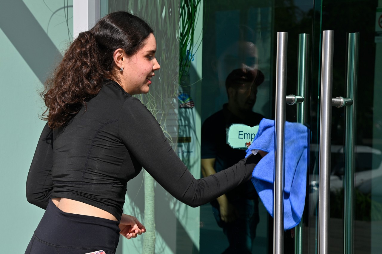 Por su parte, Brayan Jesús Ramírez Barrantes, responsable de este programa institucional, indicó que la limpieza se estructuró por niveles: mientras cada trabajador se encargó de su espacio individual, las áreas comunes fueron distribuidas entre todo el personal para asegurar la atención de todo el edificio.