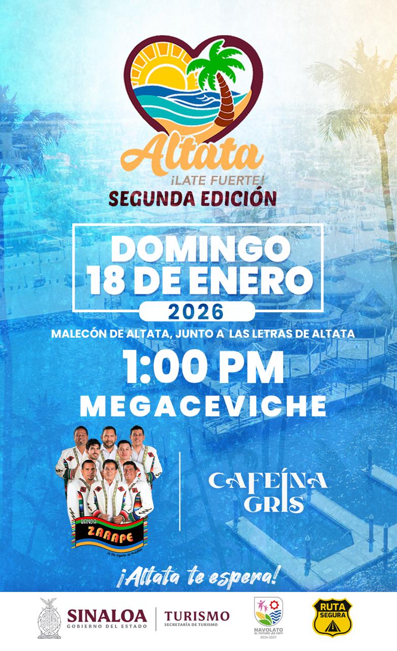 Invitamos a todos los sinaloenses y visitantes a disfrutar de un ambiente cien por ciento familiar, con música, cultura, gastronomía y la hospitalidad de la gente de Altata, donde se tendrá la elaboración de un mega ceviche de 700 kilos, el cual podrá ser degustado de forma gratuita por todos los asistentes”, expresó.
