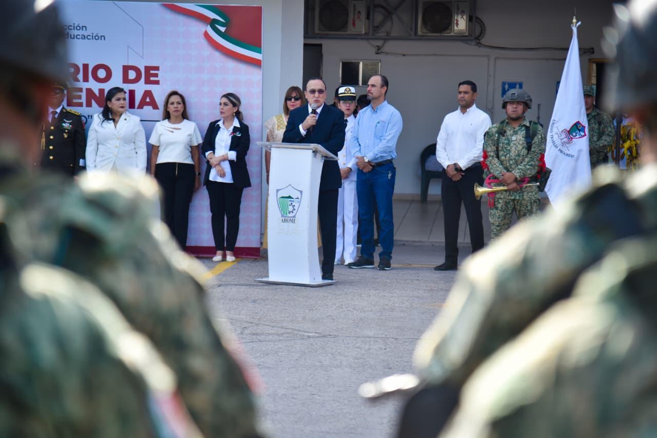 En el recorrido del desfile participaron autoridades civiles, militares y educativas, encabezadas por el Alcalde Antonio Menéndez De Llano Bermúdez, seguidos por elementos de Tránsito Municipal motorizados en punta de lanza, Banderín del Ayuntamiento de Ahome, funcionarios, regidores, mandos militares y diputados y diputadas locales y federales, entre otros.