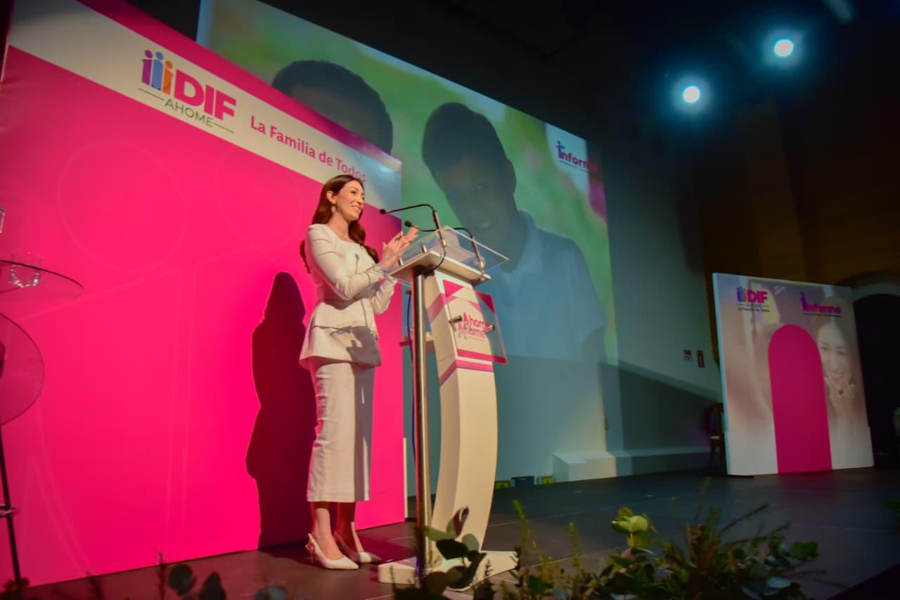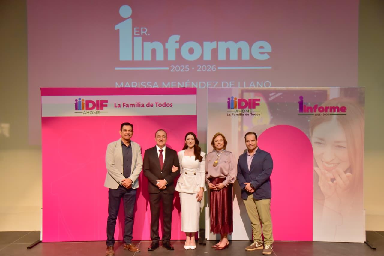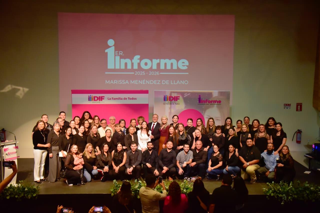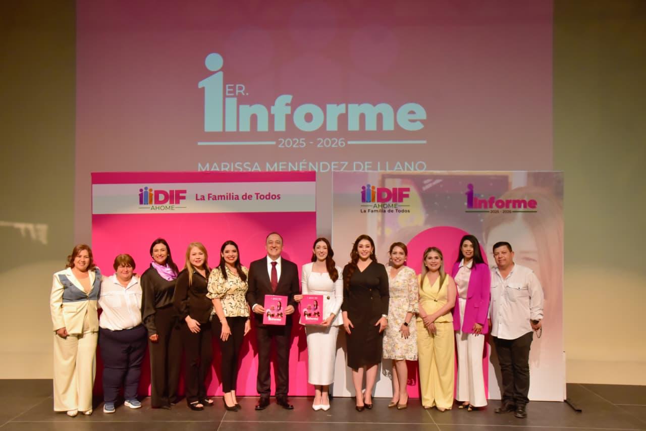 Los Mochis, Ahome, Sinaloa. – La Presidenta del Sistema DIF Ahome, Marissa Menéndez de Llano, encabezó la presentación del 1er Informe de Actividades DIF 2025-2026, donde subrayó que los logros alcanzados no son sólo números ni estadísticas, sino historias reales de familias que recibieron atención oportuna, cercana y con empatía.
