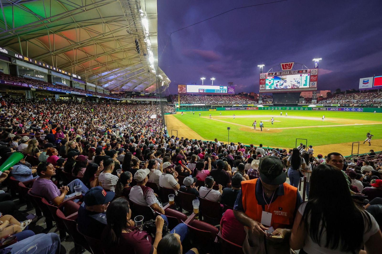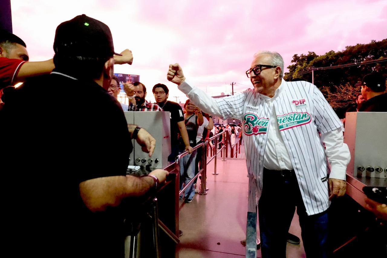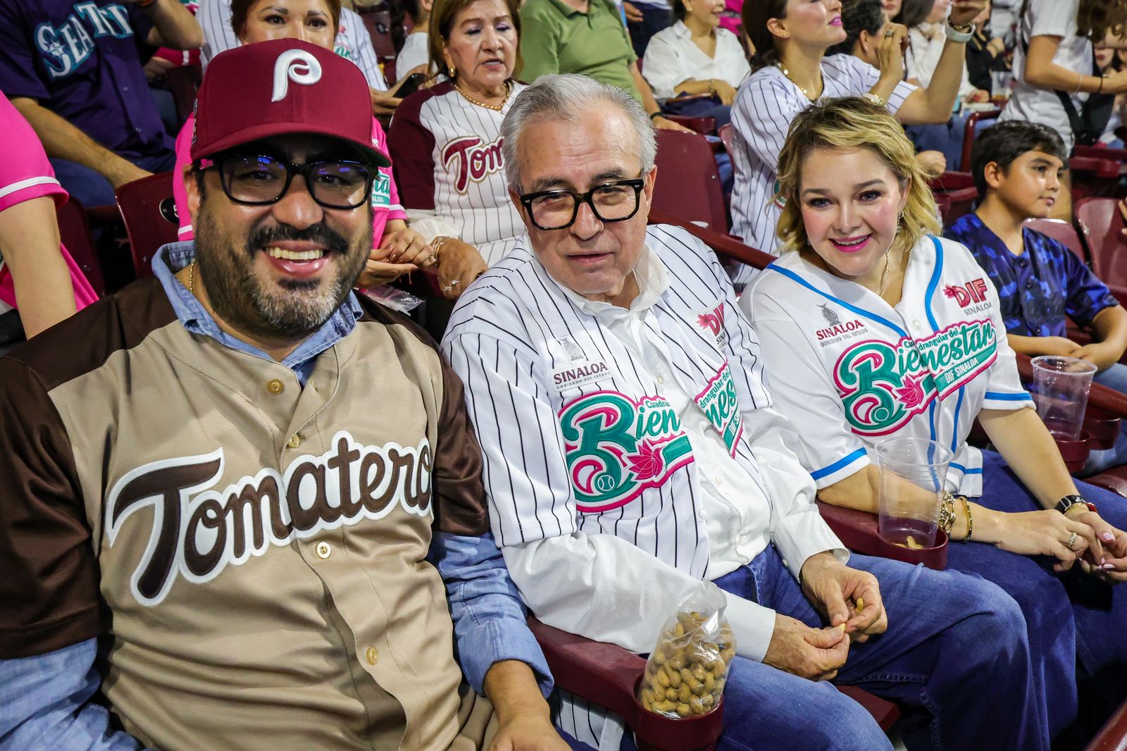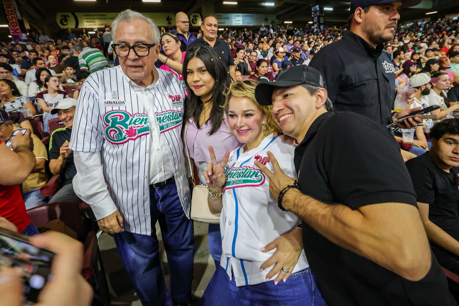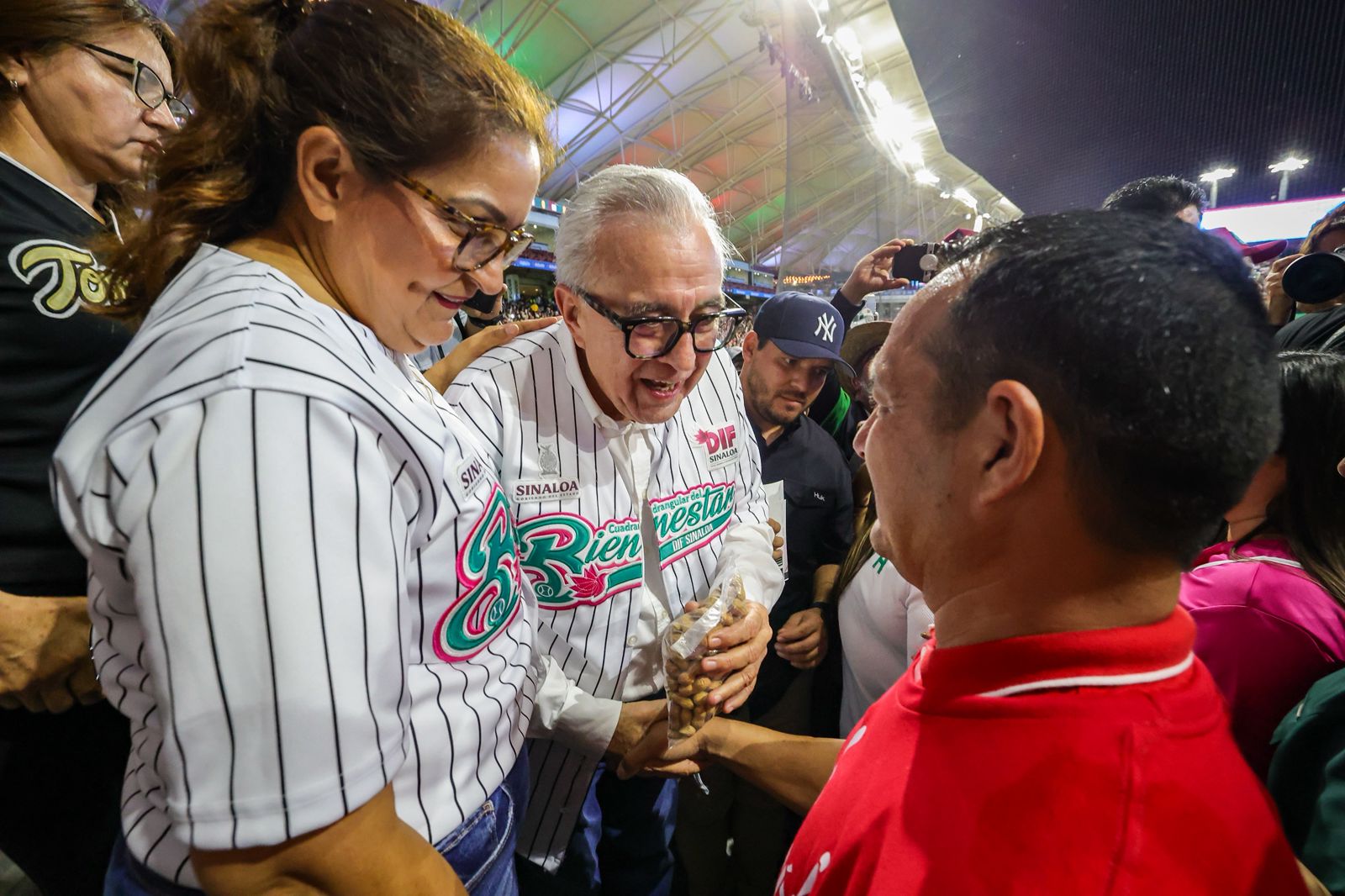 El Gobernador junto a la presidenta del Sistema DIF Sinaloa, Eneyda Rocha Ruiz, acudieron a presenciar el juego entre Venados de Mazatlán y Tomateros de Culiacán en un estadio que lució un lleno impresionante