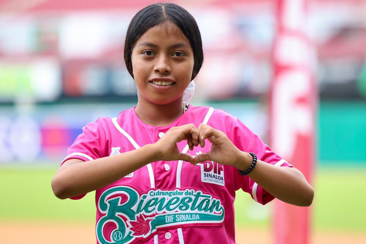 El lanzamiento de la primera bola estuvo a cargo de Sarahí Bartolo que vive en la Sindicatura de Villa Juárez, Navolato; Sarahí tiene diagnóstico de insuficiencia renal crónica y que está en lista de espera para trasplante renal, durante el protocolo estuvo acompañada de Eneyda Rocha y directivos de Tomateros de Culiacán; Héctor Ley López y Héctor Ley Pineda, así como el alcalde Juan de Dios Gámez Mendívil y su esposa Irma Nydia Gasca Aldama, presidenta de DIF Culiacán y Mercedes Ibarra Medina, directora general de DIF Sinaloa.