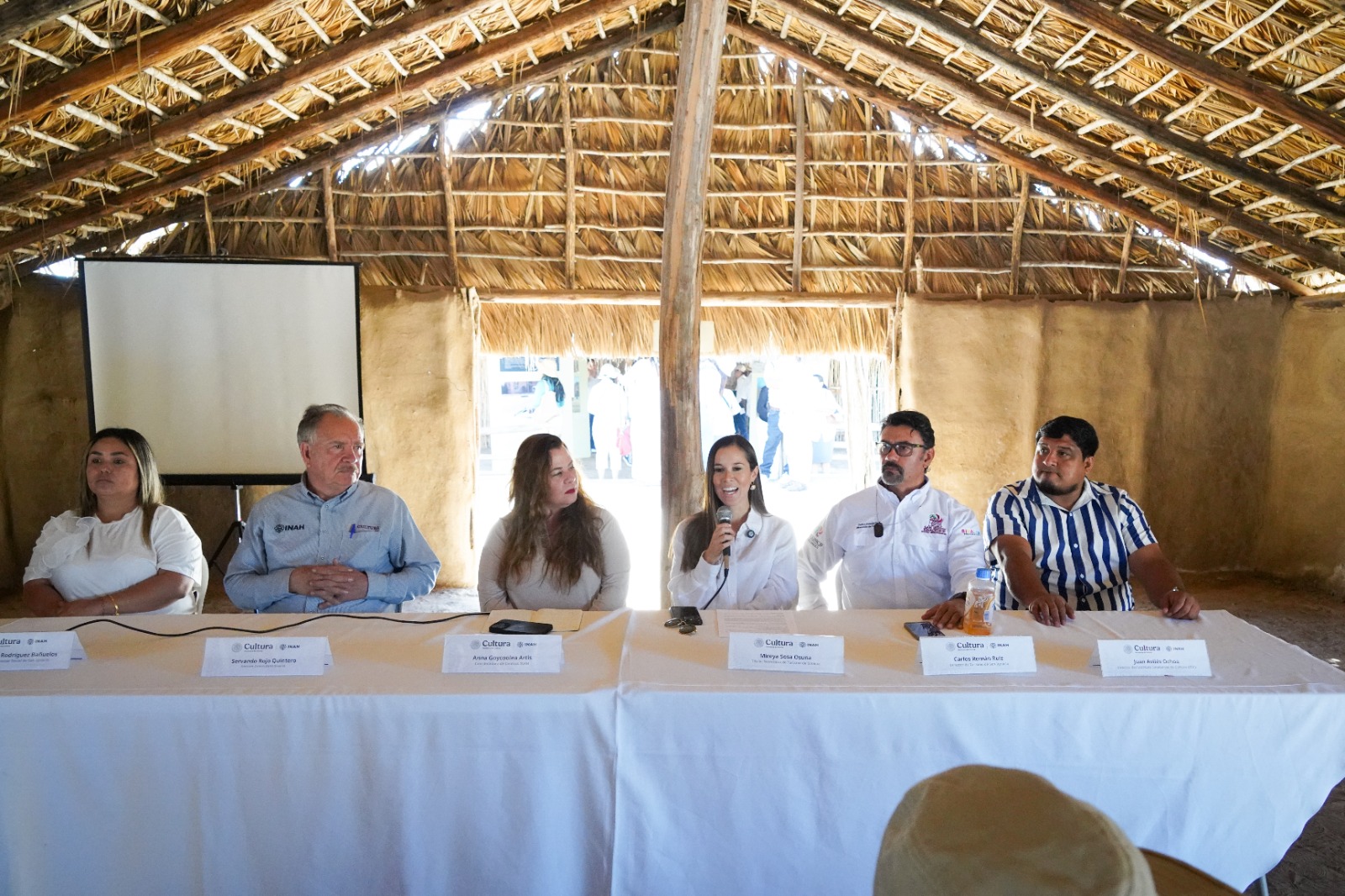 Sosa Osuna estuvo acompañada de Servando Rojo Quintero, director del Centro INAH Sinaloa; Anna Goycoolea, coordinadora Nacional de Centros INAH; Irma Rodríguez, en representación del Presidente Municipal de San Ignacio y Carlos Román Ruiz, director de Turismo de San Ignacio.