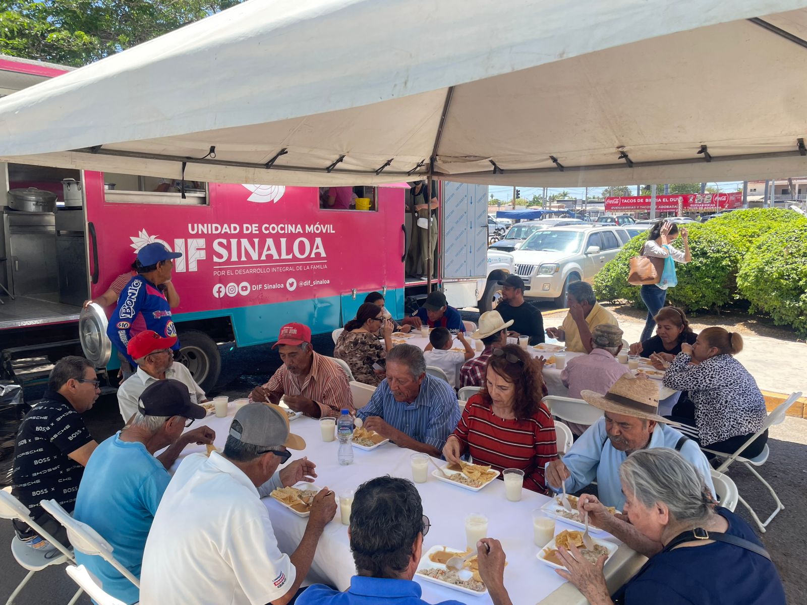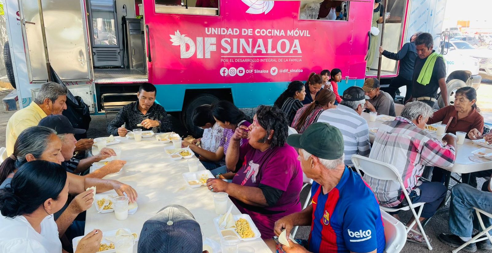 Los Mochis, Sinaloa. – La Presidenta del Sistema DIF Sinaloa, Eneyda Rocha Ruiz, envió la Unidad de Cocina Móvil a esta ciudad, con la finalidad de brindar desayunos y comidas calientes a personas con necesidad alimentaria en el momento.
