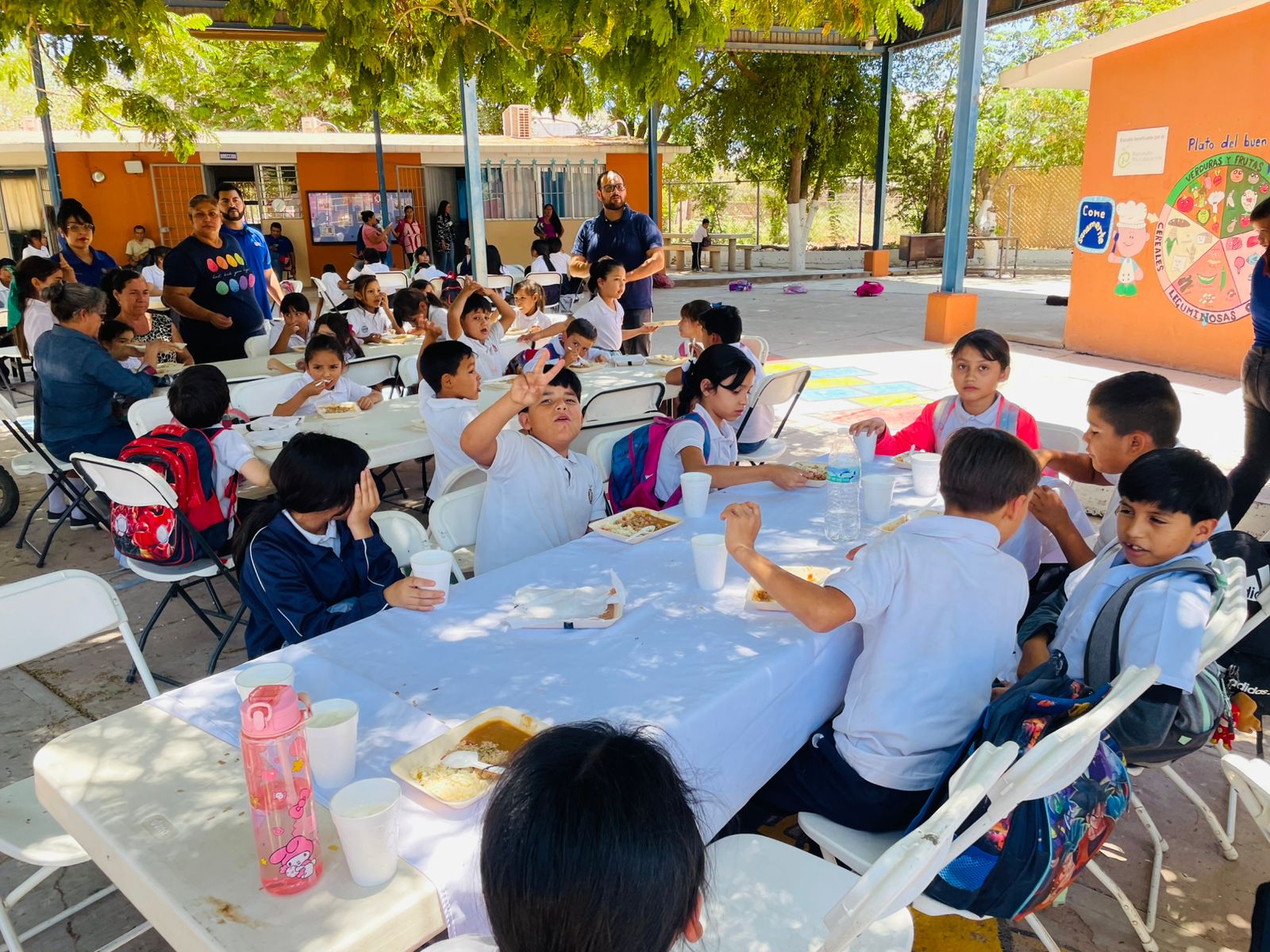 Este viernes 23, las niñas, los niños y algunos padres de familia de la primaria “Jaime Nunó” en el Sector Los Almacenes, disfrutaron de un saludable desayuno caliente con un vaso de avena caliente, en donde los mismos maestros se sumaron para ayudar a servir los platillos. Para sorpresa de los menores estudiantes, al salir de clases ya estaba lista la comida para ellos mismos.