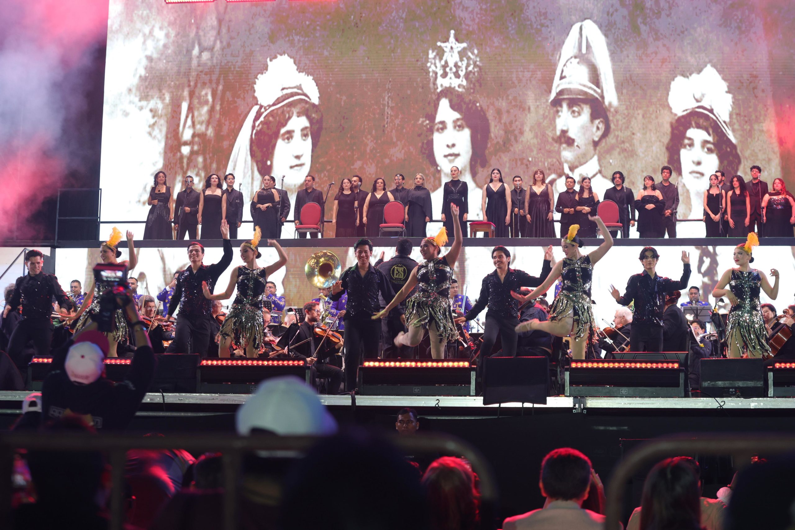 El cantante mazatlecos Adán Pérez participó con la interpretación de “La india bonita” acompañado por la OSSLA y la Banda Estrellas de Sinaloa.