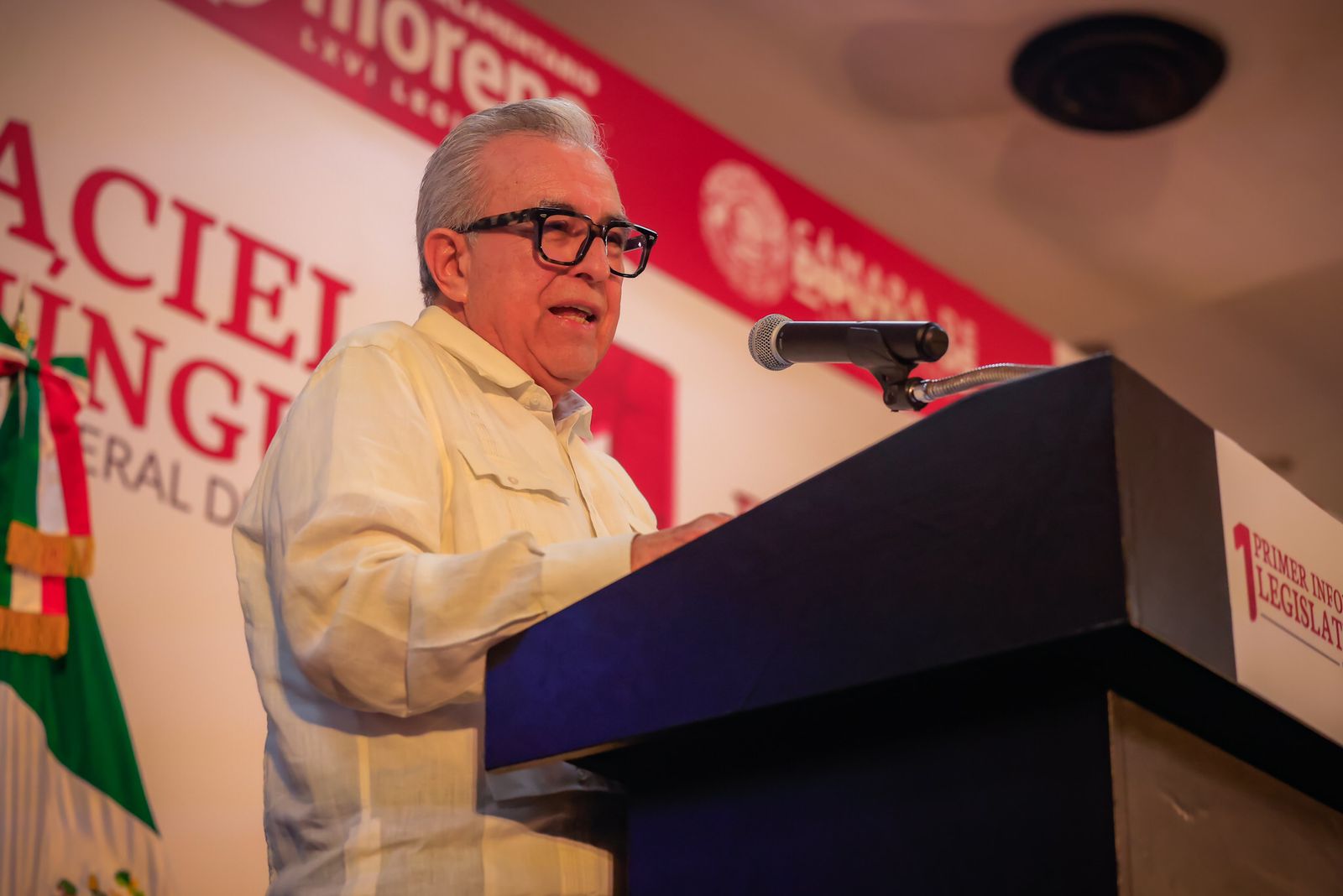 Mazatlán, Sinaloa. – El gobernador Rubén Rocha Moya asistió este sábado a la presentación del primer informe de labores de la diputada federal, Graciela Domínguez Nava, donde destacó la importancia del trabajo de los legisladores federales al aprobar las leyes que se convierten en beneficio de la población, como el hecho de haber elevado a rango constitucional los programas sociales creados por los gobiernos de la llamada Cuarta Transformación, cuyo lema sigue siendo Por el bien de todos, primero los pobres.