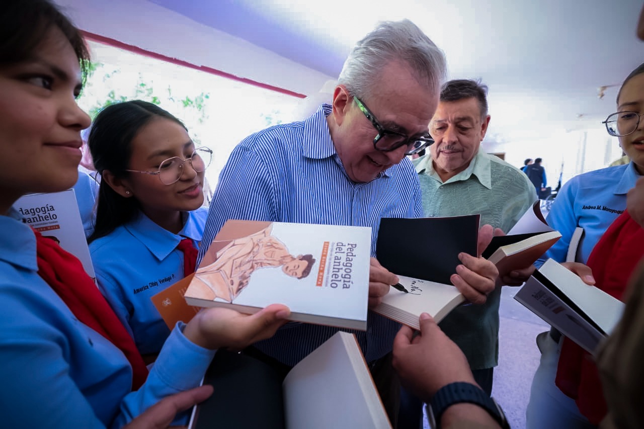 El Quinto, Etchojoa, Sonora. – Fortaleciendo lazos y convivencia generacional con las y los maestros egresados de las escuelas normales de todo el país, para compartir aportaciones y experiencias a través del diálogo y la reflexión, como ex alumno normalista rural, el Dr. Rubén Rocha Moya, asistió como invitado de honor, al V Encuentro Nacional de Egresados y Egresadas de Escuelas Normales Rurales, realizado en su Alma Máter en El Quinto, Etchojoa, Sonora, donde presentó su libro “Pedagogía del Anhelo. Una Vida en las Normales Rurales”.
