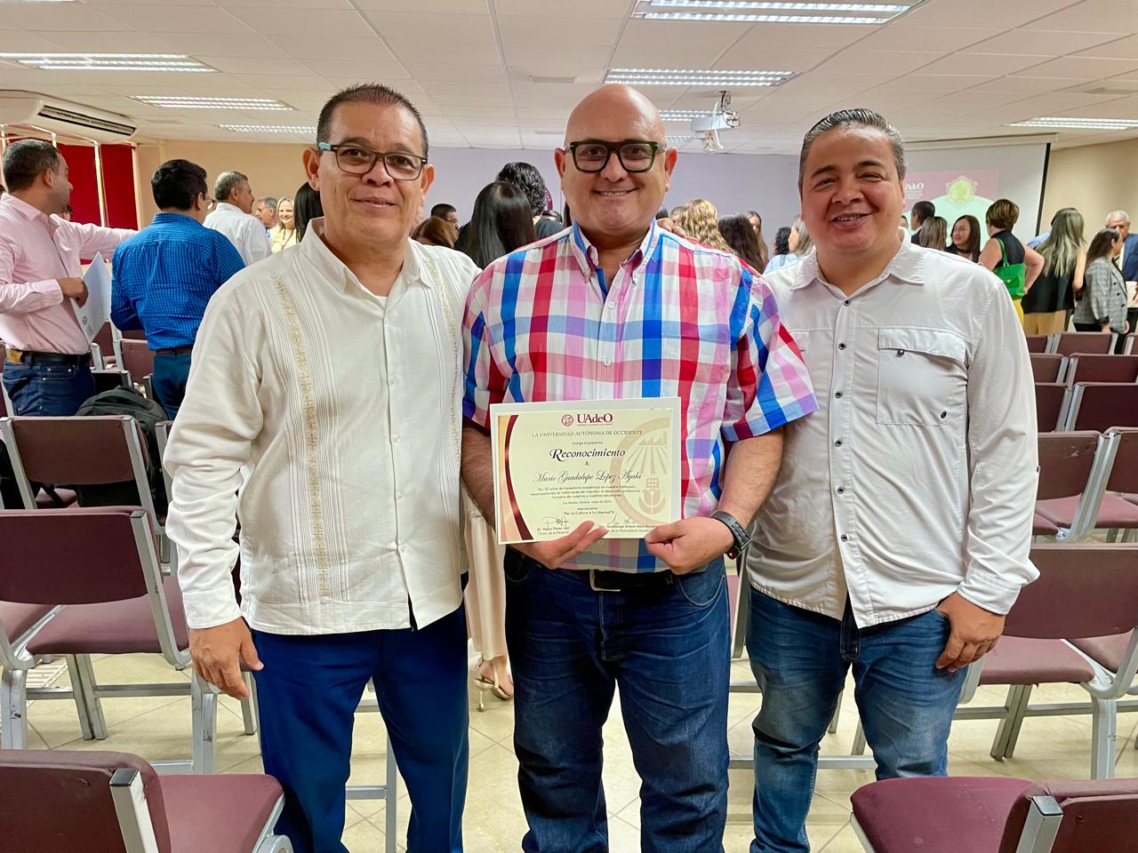 Los Mochis, Sinaloa. – Mario Guadalupe López Ayala recibió este viernes un reconocimiento a la trayectoria académica por 20 años de labor en la Universidad Autónoma de Occidente.