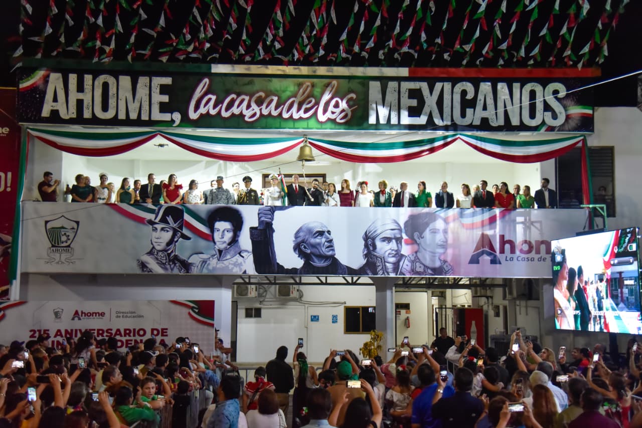 Los Mochis, Ahome, Sinaloa. – Más de 7 mil ahomenses corearon junto con el Presidente Municipal Antonio Menéndez De Llano Bermúdez, el tradicional ¡Viva México! en Palacio Municipal, para conmemorar el 215 Aniversario del inicio de la Independencia Nacional.