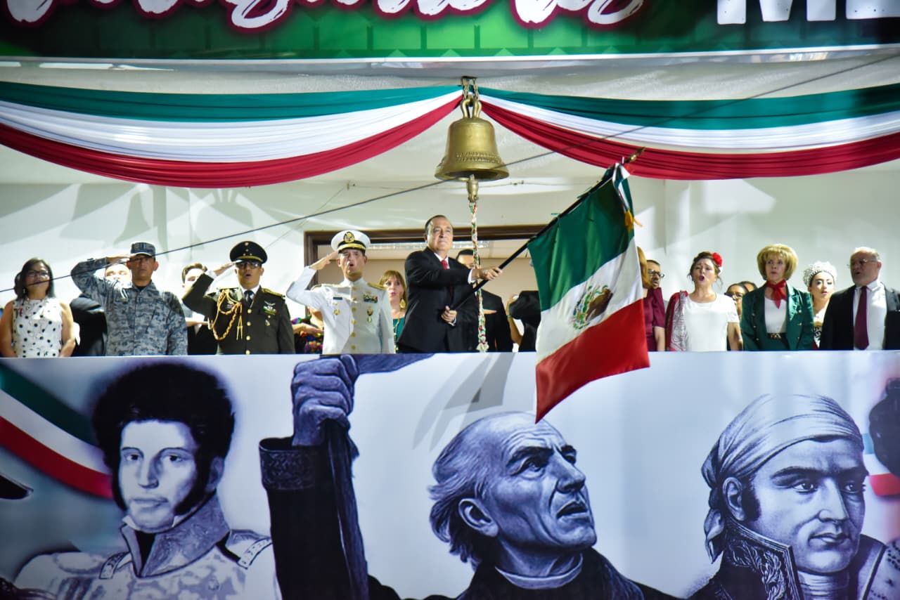 ¡Viva la Independencia de México! ¡Vivan los Héroes que nos dieron Patria! ¡Vivan los Héroes que nos dieron Libertad! ¡Viva Don Miguel Hidalgo! ¡Viva José María Morelos! ¡Viva Josefa Ortiz! ¡Viva Allende! ¡Viva Leona Vicario! ¡Viva Vicente Guerrero! ¡Viva Juan Aldama! ¡Que Viva el Estado Libre y Soberano de Sinaloa! ¡Viva el Municipio de Ahome! ¡Qué viva México! ¡Que viva México! ¡Qué viva México!”, arengó el Alcalde junto con ellos.