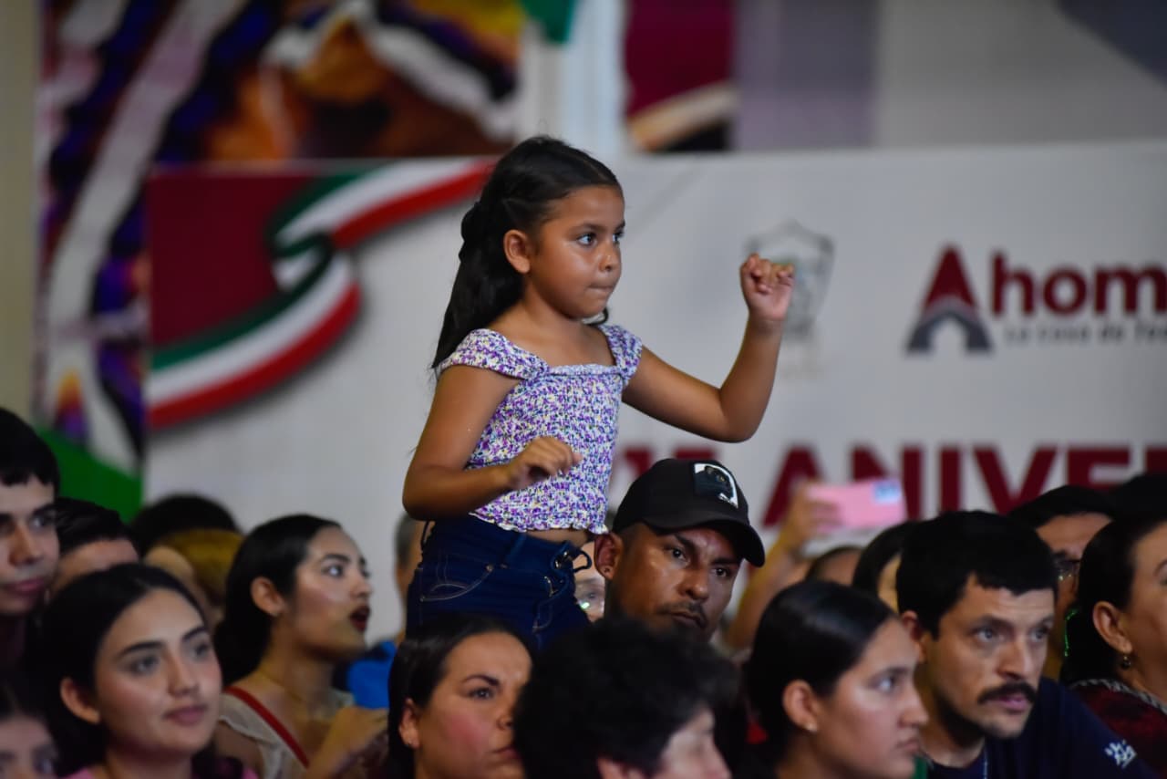 En esta ceremonia cívica de su primer Grito de Independencia como Presidente Municipal de Ahome, el Alcalde estuvo acompañado de su madre, hijas, hijos, funcionarios de los tres órdenes de gobierno, autoridades educativas y las Fuerzas Militares.